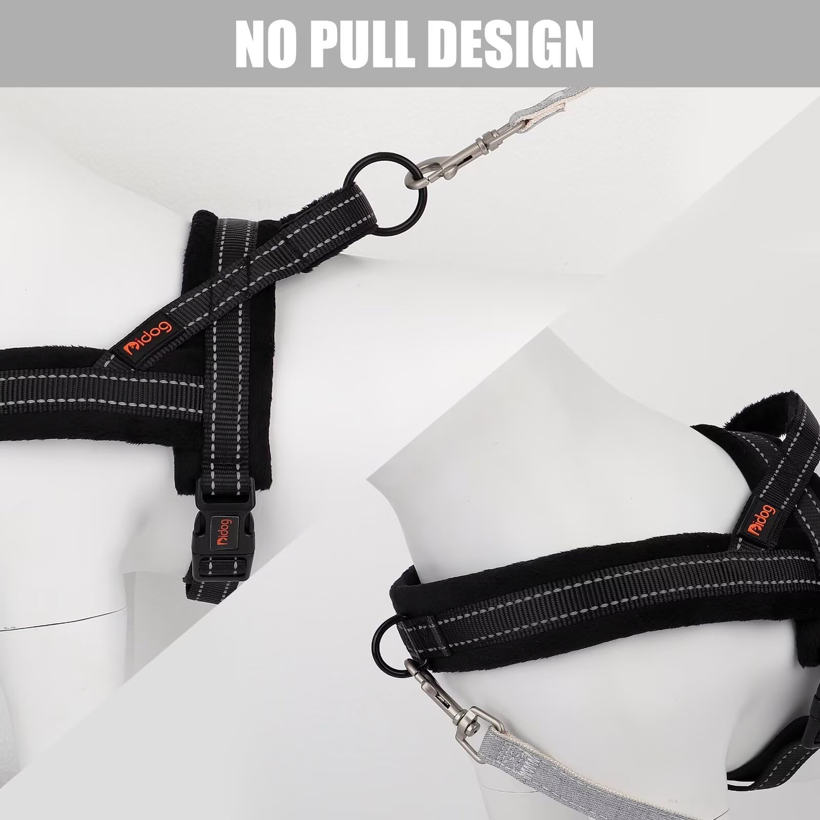 Didog Soft Flannel Padded Dog Vest Harness, No Pull/Quick Fit Reflective Dog Strap Harness, Easy for Training Walking (L:Chest 26-32", Black)