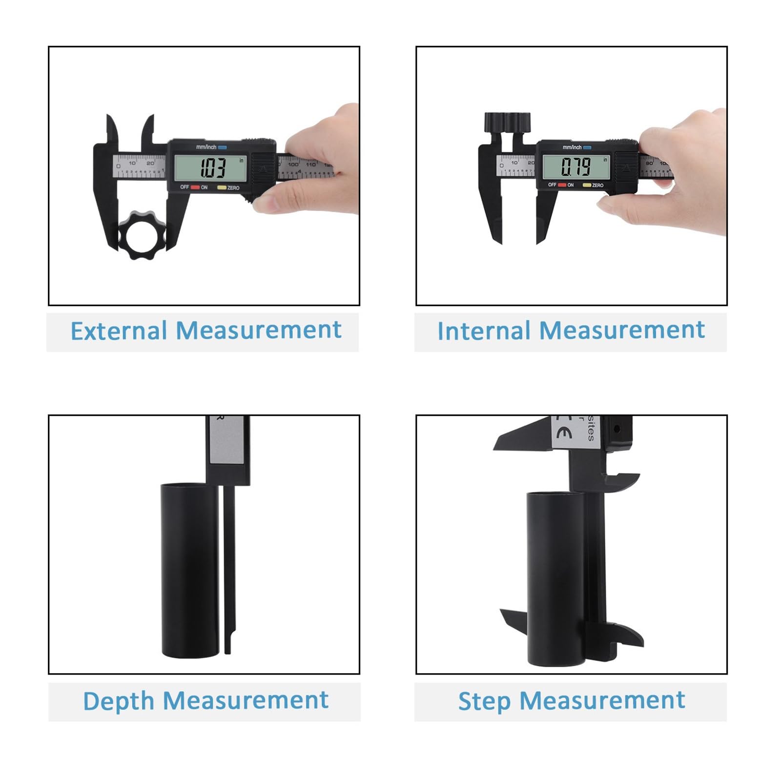 • Precise measurement: Measurement range: 0 - 6''/0 - 150 mm; Resolution: 0.01”/0.1 mm; Accuracy: +/- 0.2 mm/0.01”. Perfect and accurate caliper measuring tool for household/DIY measurement. Choose stainless steel digital caliper for more accurate measuring