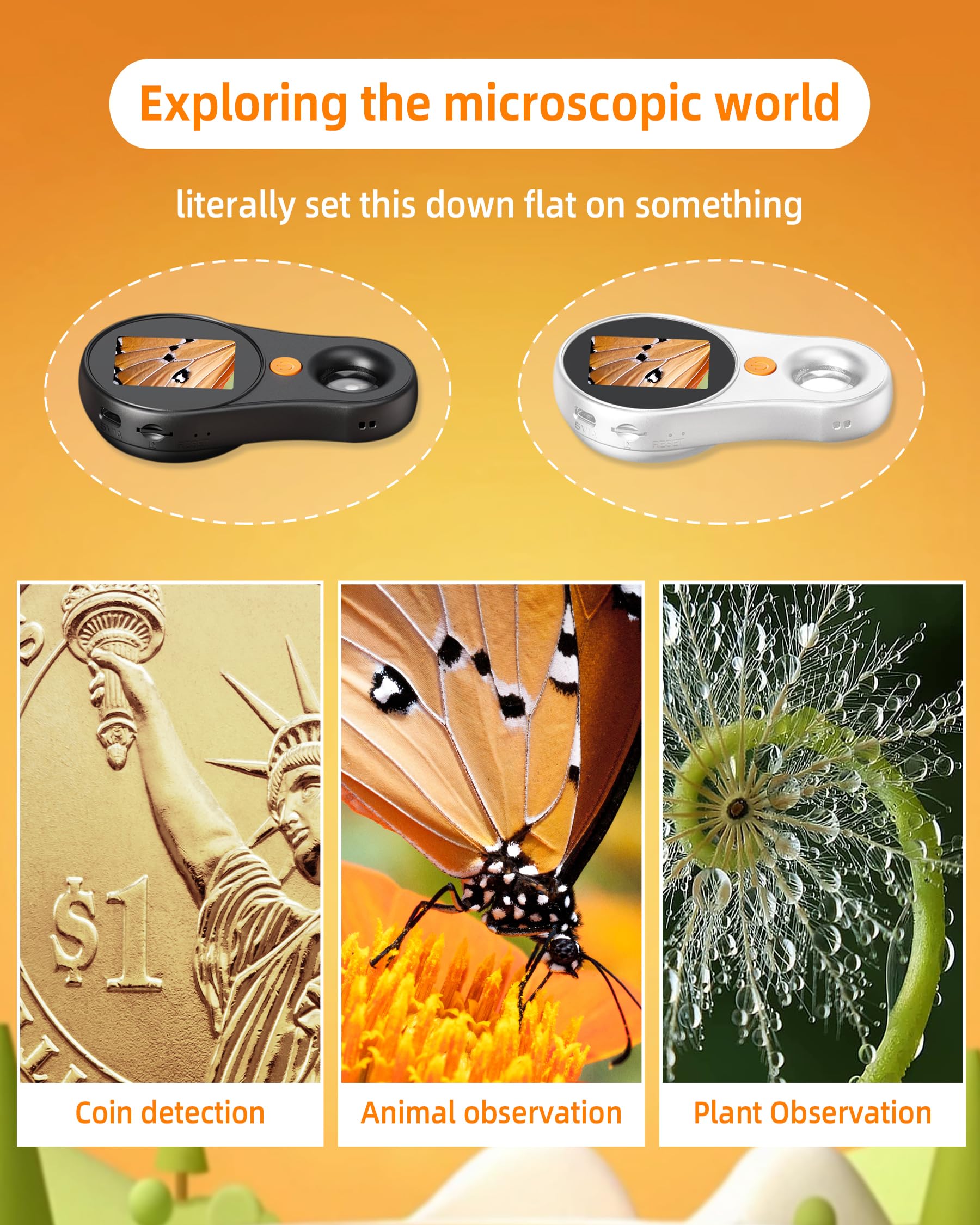 • Portable&Compact: 6.3 x 2.6 inches, it can easily fit into pockets, you can enjoy the portable mini pocket microscope on your nature hikes or at home.