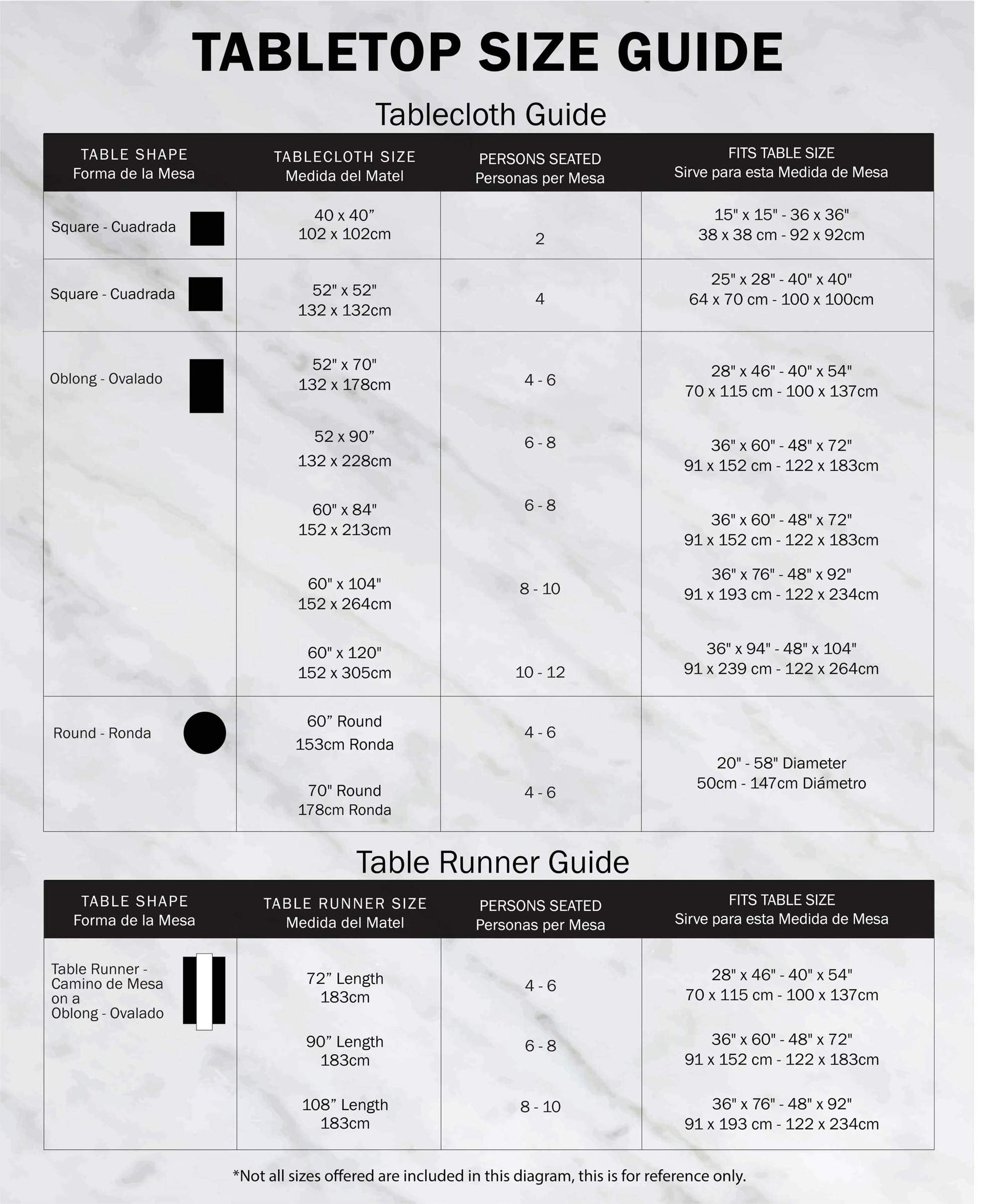 • SEATS 8 TO 10 PEOPLE - View the tablecloth size chart located in the images to help you find the right size for your table. We want to ensure you are matched with the perfect size and have a tablecloth you'll love.
