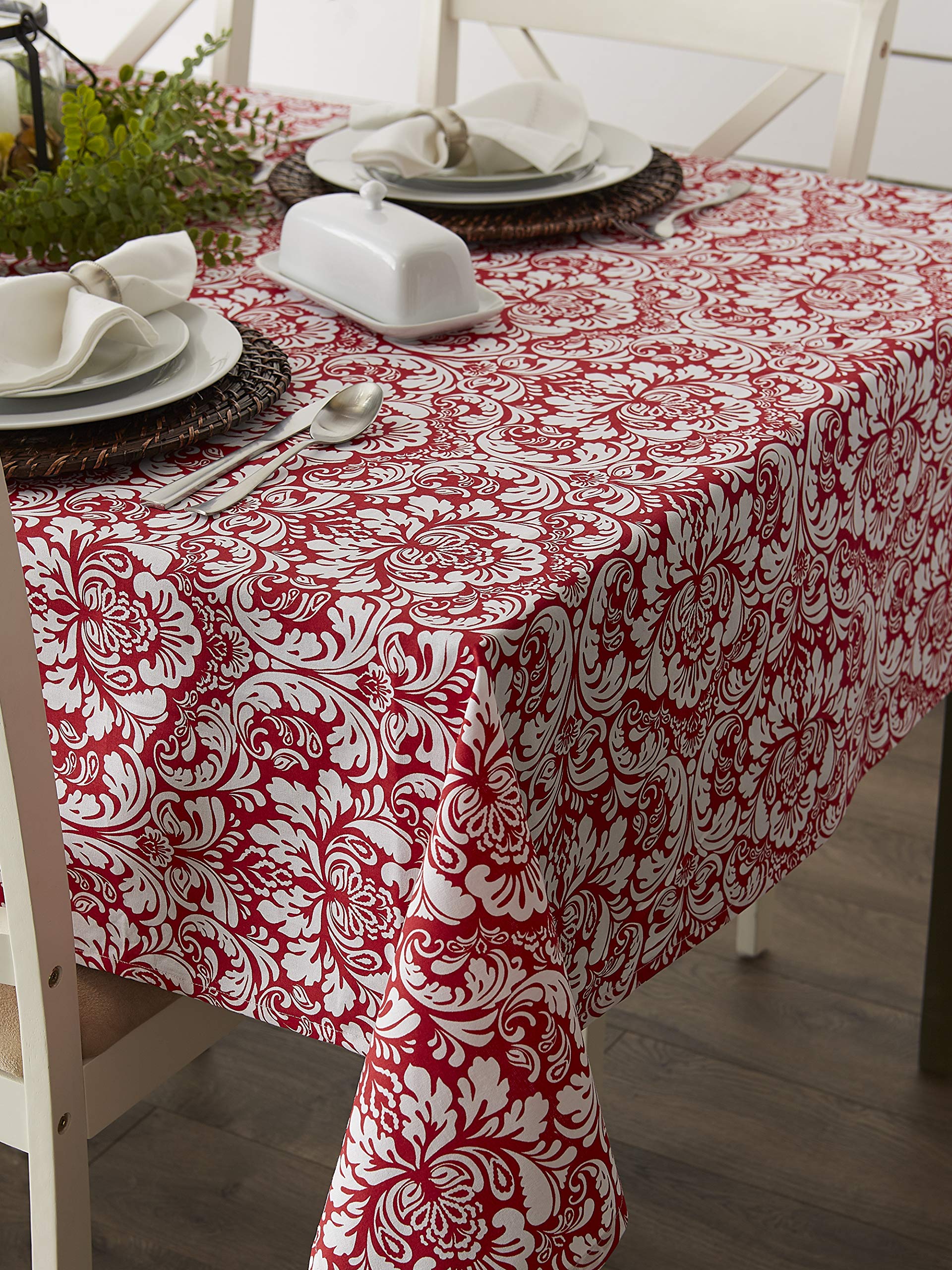 DII 100% Cotton, Machine Washable, Everyday Damask Kitchen Tablecloth for Dinner Parties, Summer & Outdoor Picnics - 60x84 Seats 6 to 8 People, Tango Red