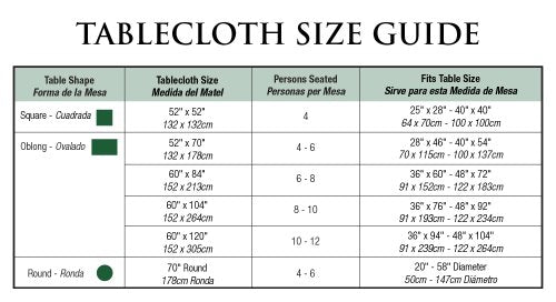 • Tablecloth measures 52x52-inch and seats 4 people, view size chart within images to decide what size is needed for your table