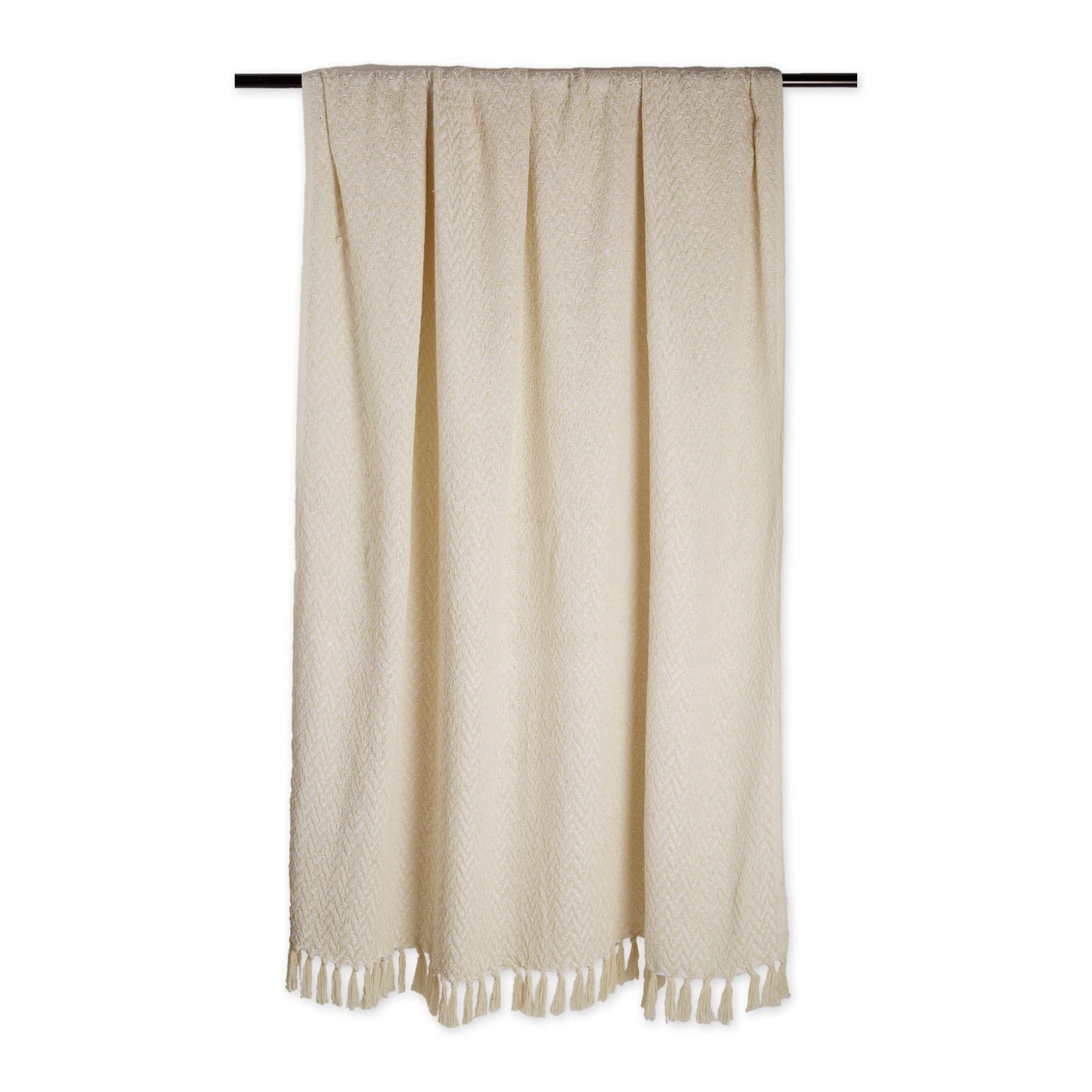 DII Modern Zig Zag Throw Blanket Woven Cotton, Hand-Knotted 2.5" Fringe, 50x60, Natural