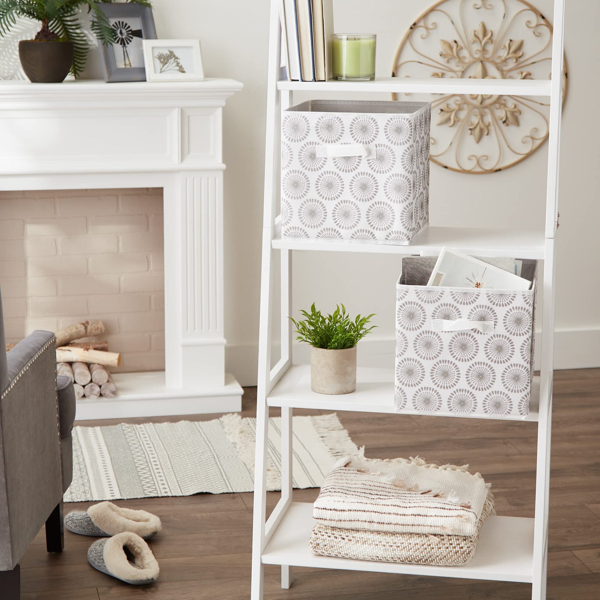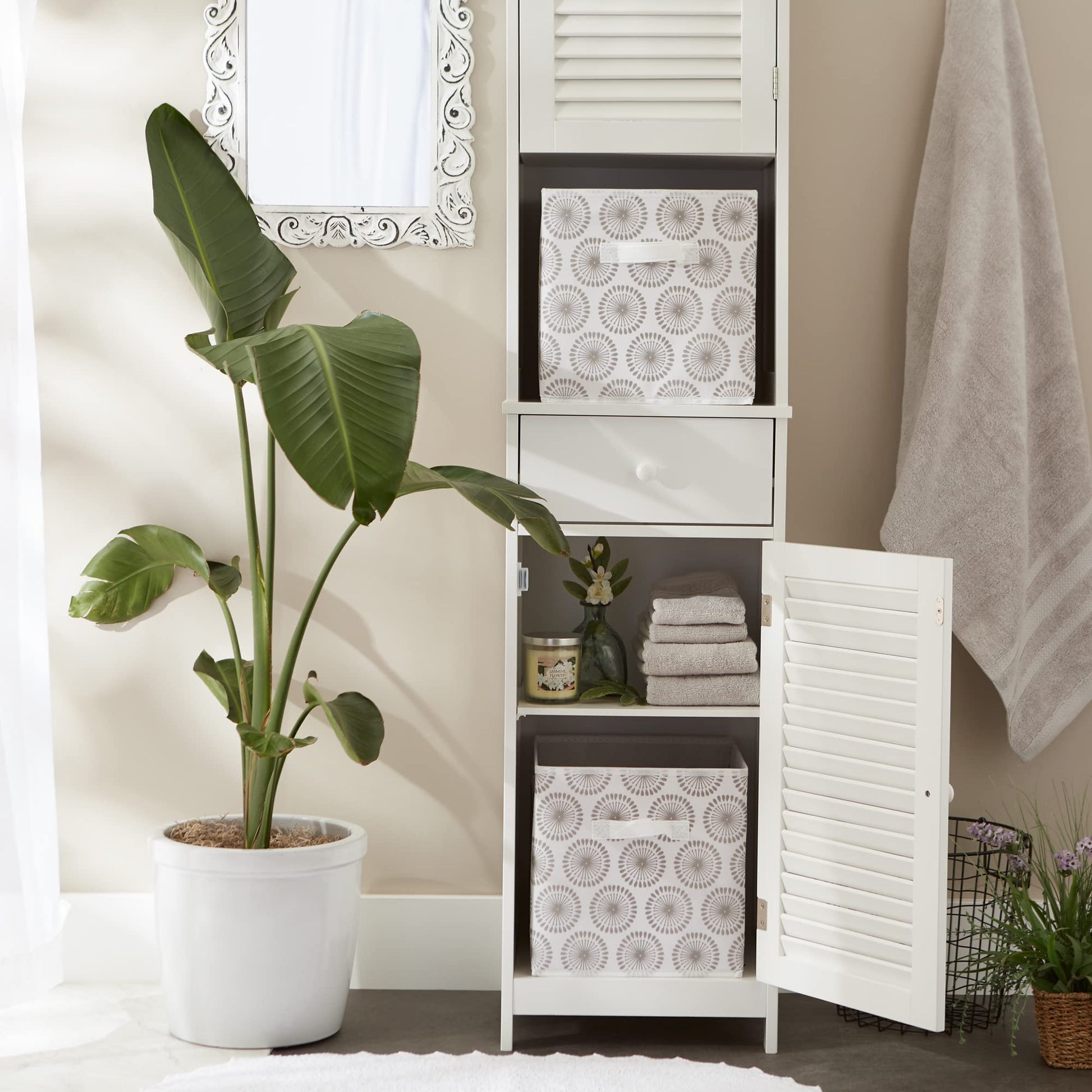 STURDY CONSTRUCTION: Non-woven fabric storage bins have cardboard sides and a removable bottom to give shape and add structure while still allowing bins to fold flat when not in use