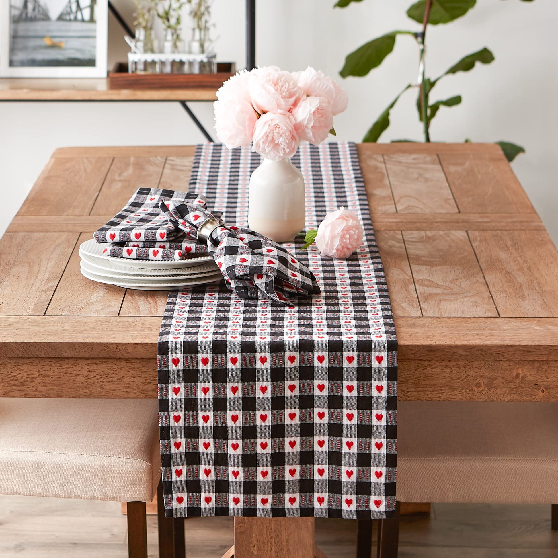 DII Valentine's Day Collection, Napkin Set, 20x20, Dobby Hearts Check
