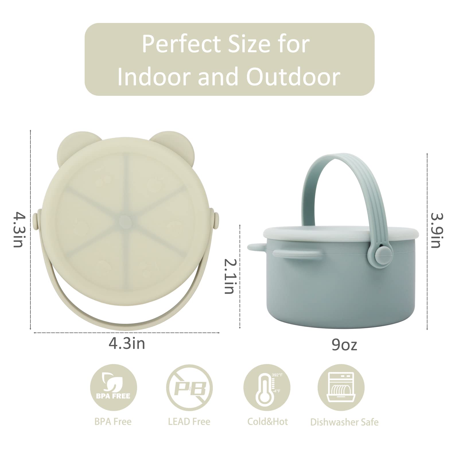 • 👶A wonderful Present: The silicone snack cups are not only great at home, but it also fits easily into your bag - you will get plenty of use from it as it can easily grow with your child through toddlerhood and pre-school age. Additionally, it makes an excellent gift for baby showers and new parents.