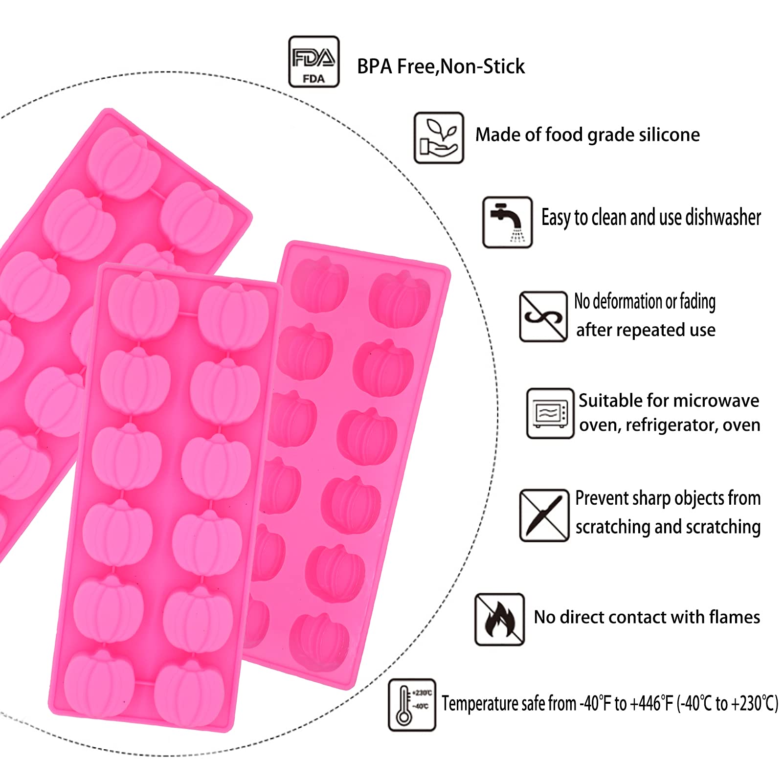 • 🎃High-quality Materials: Made from food-grade silicone, BPA-free, Pumpkin mold is healthy to use, you and your family can make delicious Halloween and Thanksgiving treats with confidence.