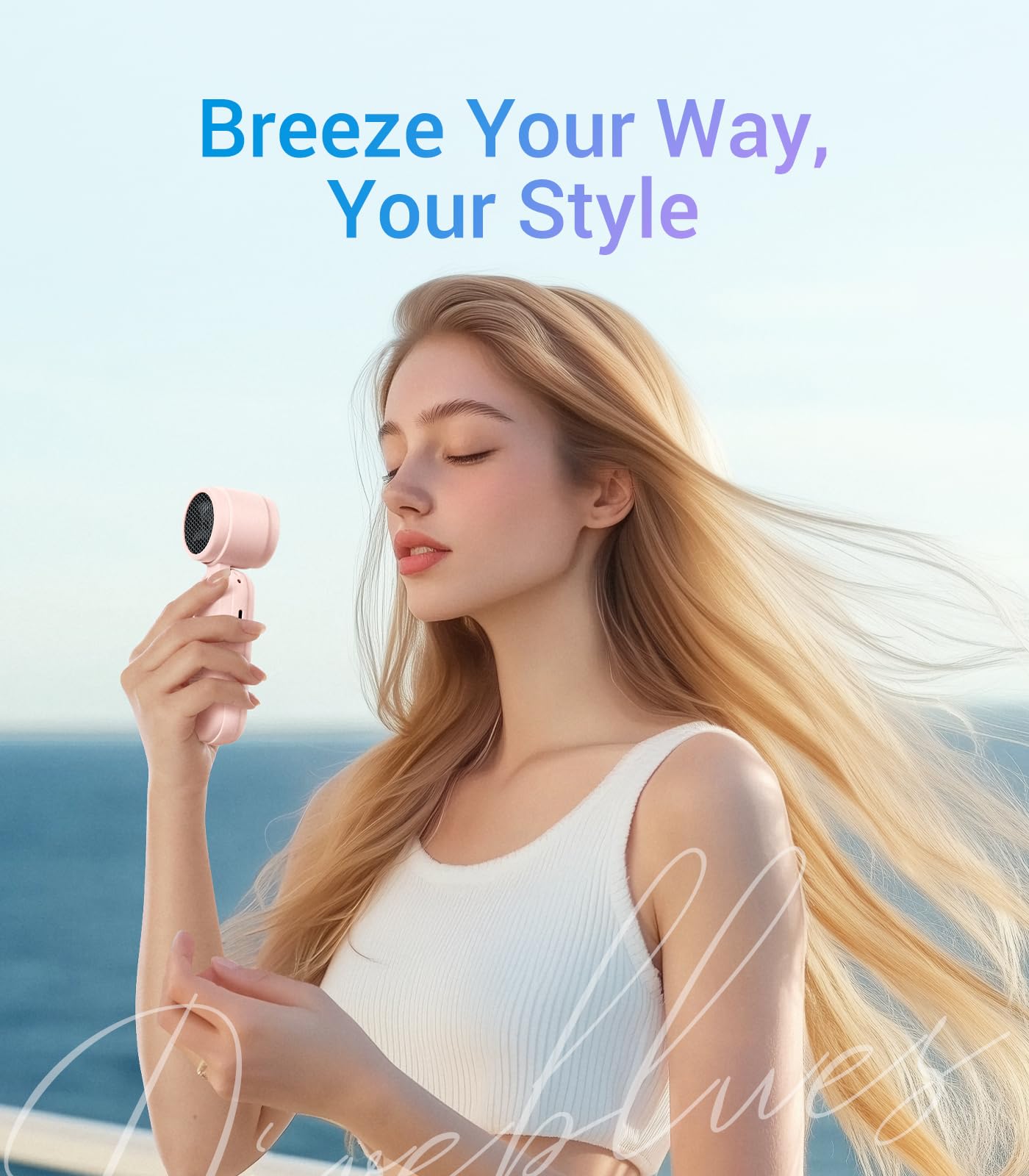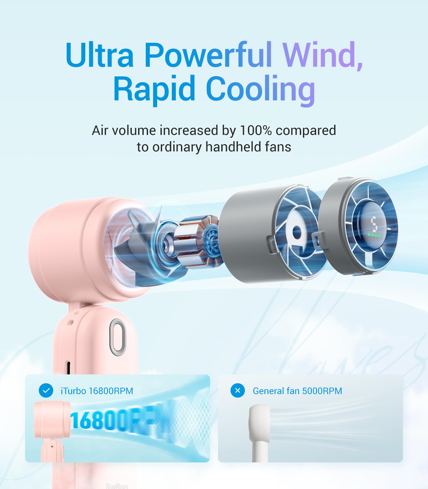 Diveblues Handheld Turbo Fan, USB Rechargeable Battery Powered, Small Portable Pocket Fan for Travel, Outdoor, Home, Office, Concerts, Lash, Gift for Women(Pink)