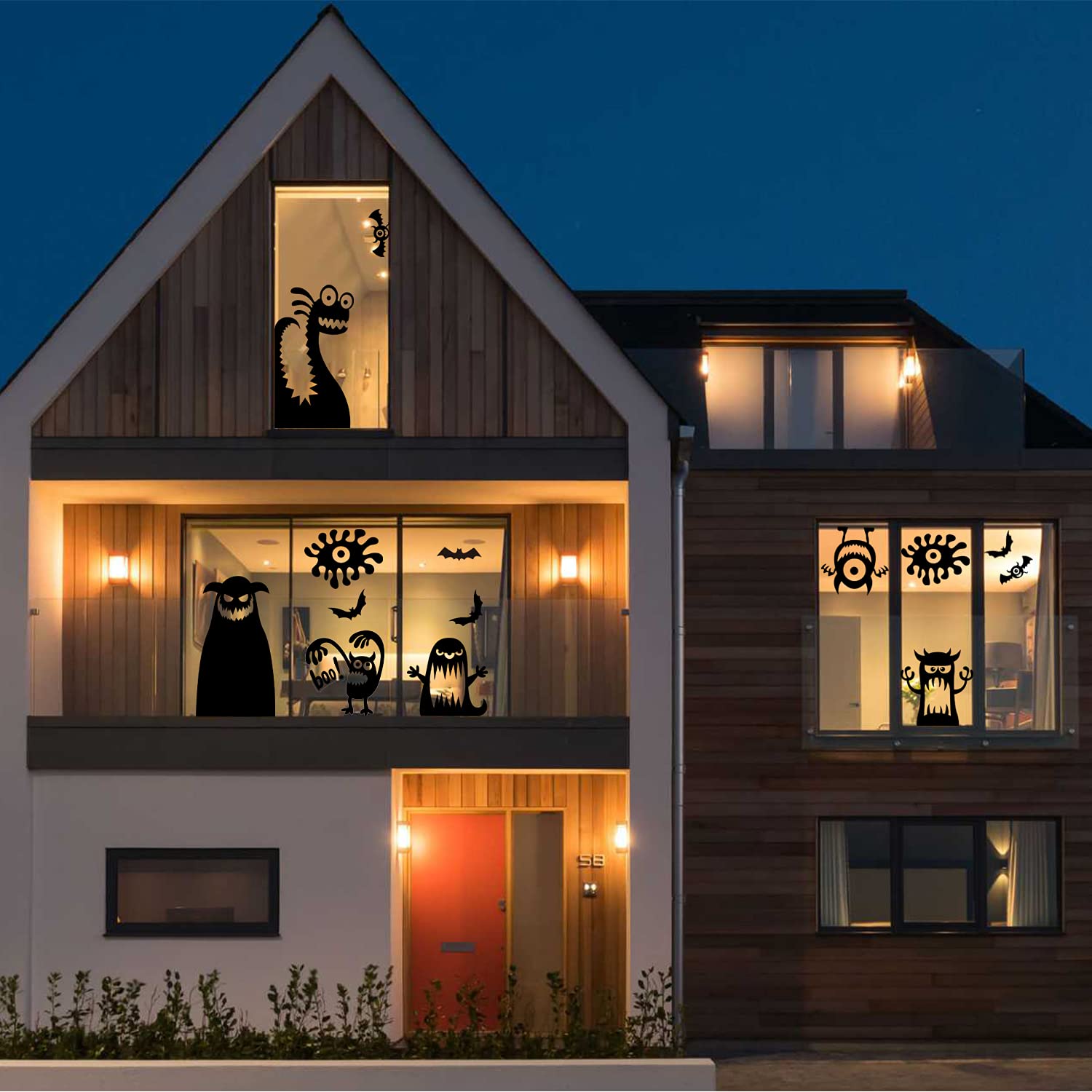 DIYASY Halloween Large Window Decoration Clings,5 Monster Silhouette Window Stickers Decals for Halloween Indoor,Room and Kids Party Decor