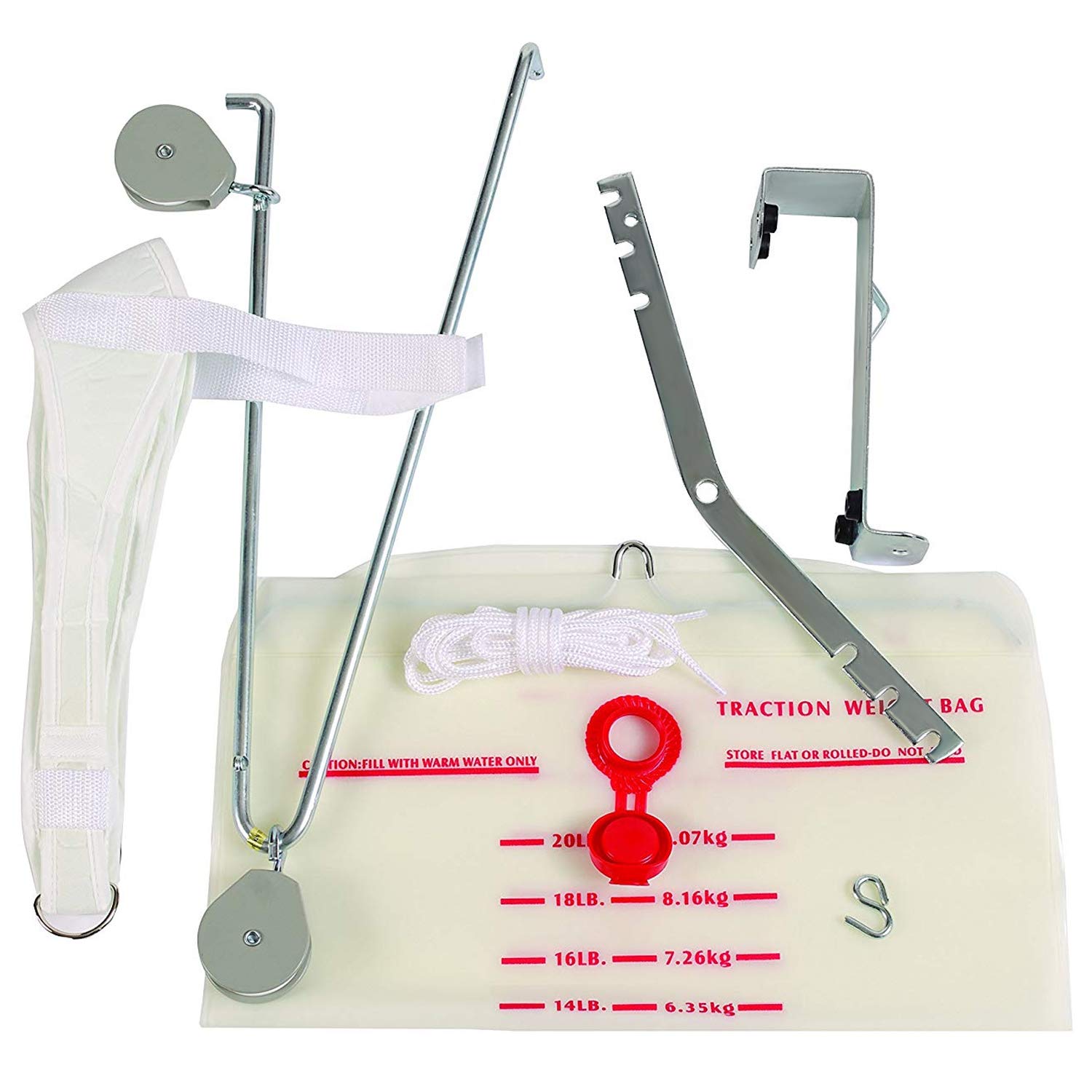 Details: Continue physical therapy exercises from the comfort of home with the best-selling posture corrector for women and men and cervical traction device. This is an effective neck, shoulder and back relaxer and can provide treatment for neck pain, back stretching, migraine relief, neck stretching and other back and neck conditions. Easy to assemble with no tools necessary. Includes one weight bag with a graduated scale that ranges from 2 to 20 pounds of water weight and a one size fits most foam padded head halter. This product should only be used under the direction of an authorized healthcare professional. Consult with your physician or therapist to learn the appropriate amount of weight to use.