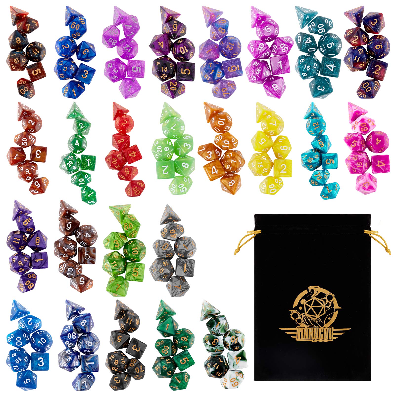 DND Dice Set, 25 X 7 Polyhedral Dice (175 Pieces) for Dungeons and Dragons DND RPG MTG Table Game D4 D6 D8 D10 D12 D20 25 Colors Dice with 1 Large Flannel Bag