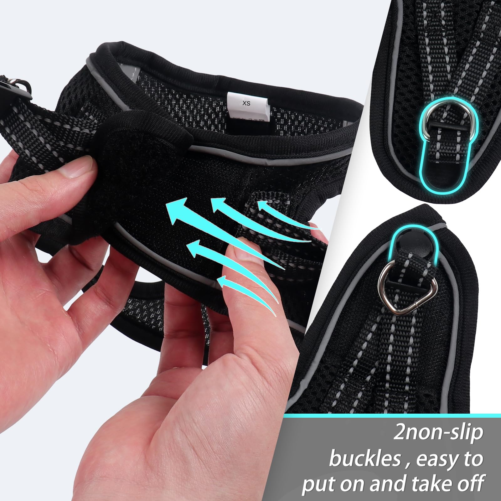 • [REFLECTIVE DOG HARNESS]: small dog harness with Magic Tape, buckle and double D-rings work together protect your pet in three layers of security. The 360°highly reflective strips provide good visibility in the dark.