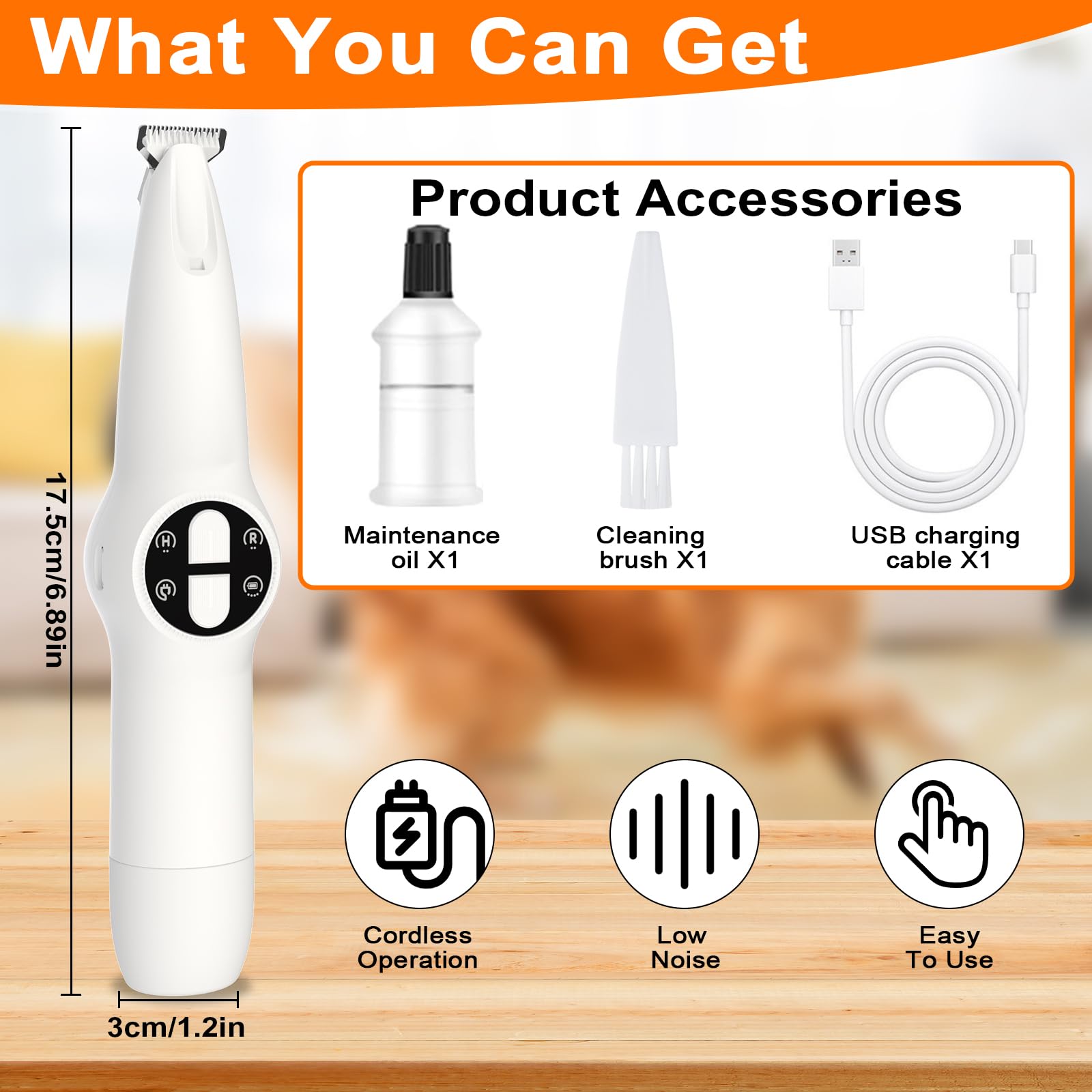 • 【What You Can Get】 Electric dog trimmer for paws*1, Charging cord*1, Cleaning brush*1, Lubricating oil*1, User manual*1. Our dog grooming kit also come with oil to keep the pet paw trimmer greased to prevent snags. 24-hour online service, contact us at any time if you have any questions.