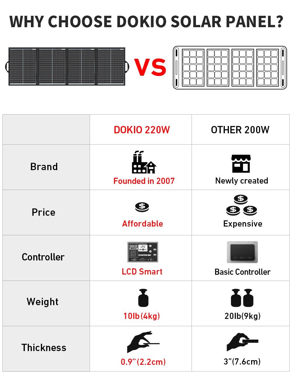 DOKIO 200W 36V Black Portable Solar Panels Kit Folding Solar Charger for 24v Batteries/Power Station AGM LiFePo4 RV Camping Trailer Car Marine