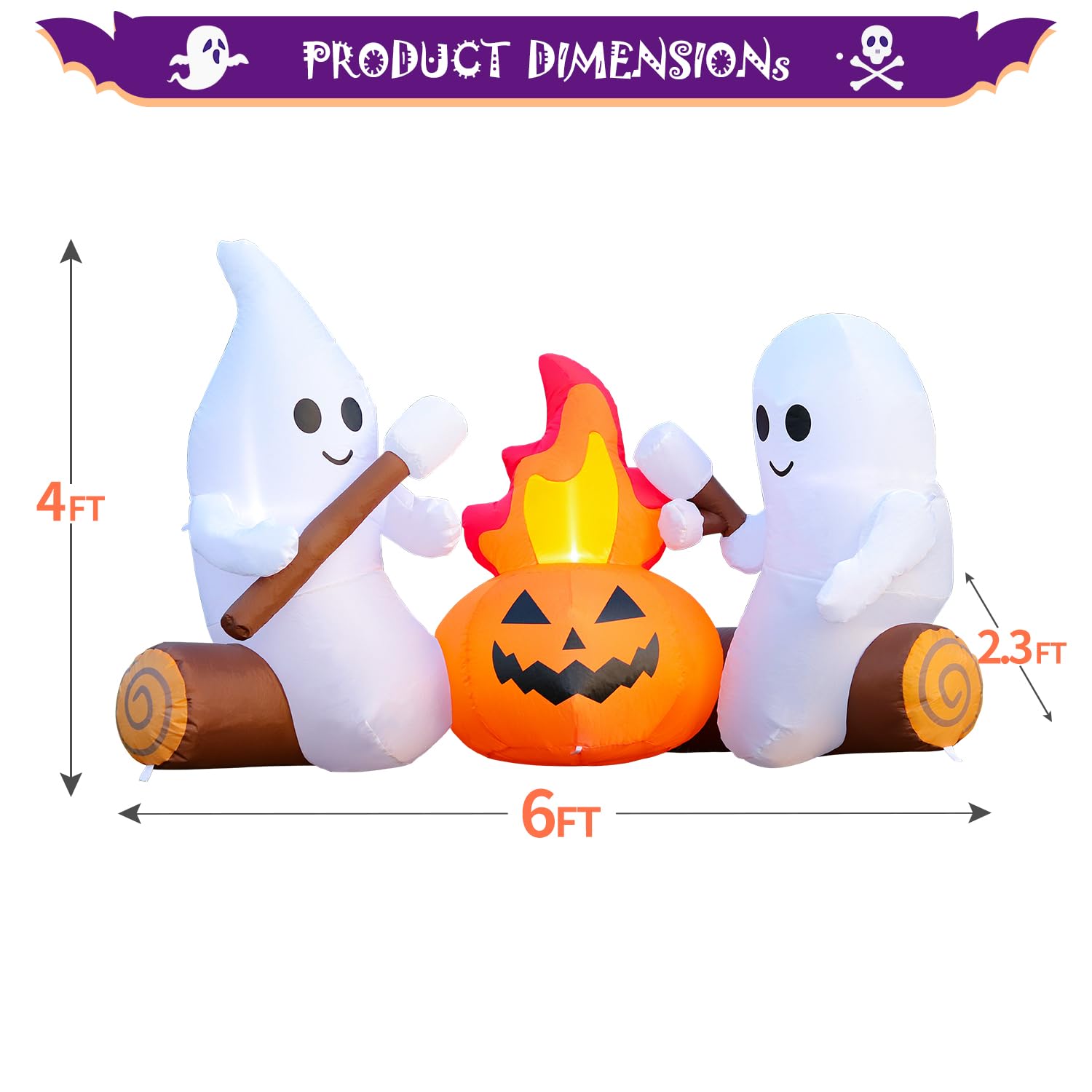 DomKom 6FT Halloween Inflatable Blow Up Decorations, Cute Ghosts Roasting Marshmallows Over Campfire, Built-in LEDs for Holiday Party, Garden, Lawn, Yard, Patio Décor