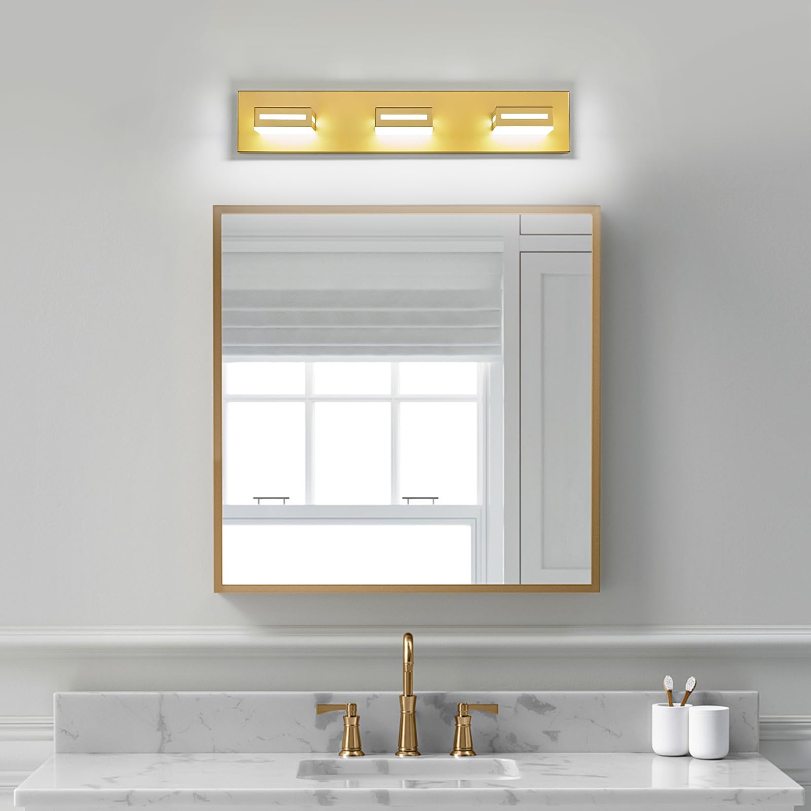 Donrao 24-Inch 3-Light LED Modern Gold Bathroom Vanity Light Fixtures Over Mirror, Bathroom Lighting Fixtures with Cool White 6000K, Vanity Wall Lights for Bath Restroom Powder Room
