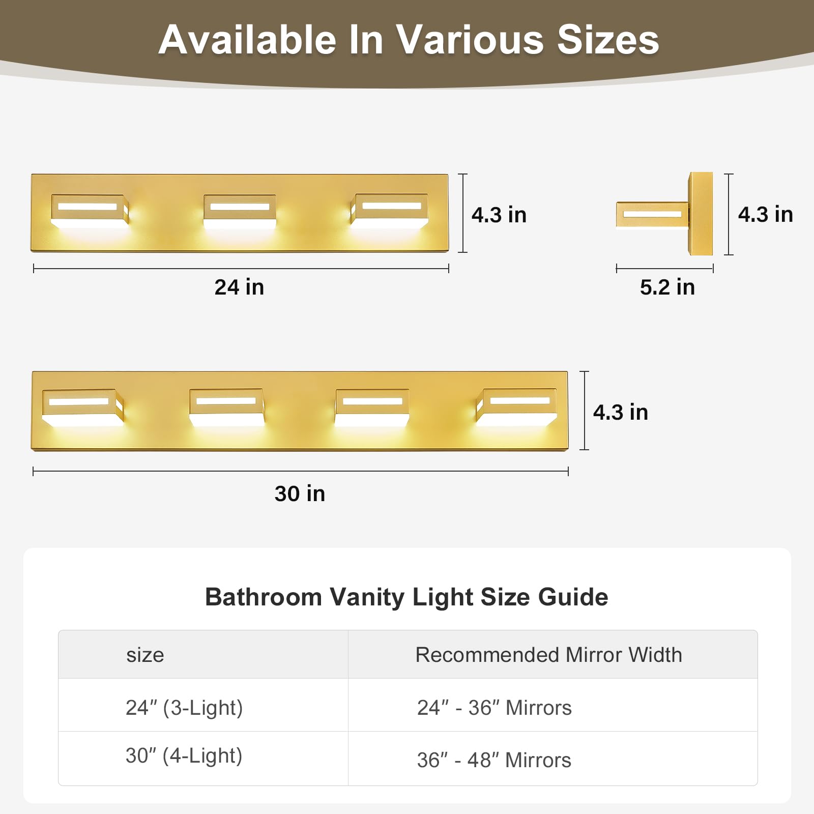• Modern, Sleek and Sturdy Design: Crafted with a metal frame and a frosted acrylic shade, Donrao gold bathroom light fixture is not only sturdy but also boasts good light transmission and heat dissipation. Its glossy finish further enhances its sophistication, giving it a modern, stylish and timeless look that makes it the perfect addition to any commercial or home lighting solution