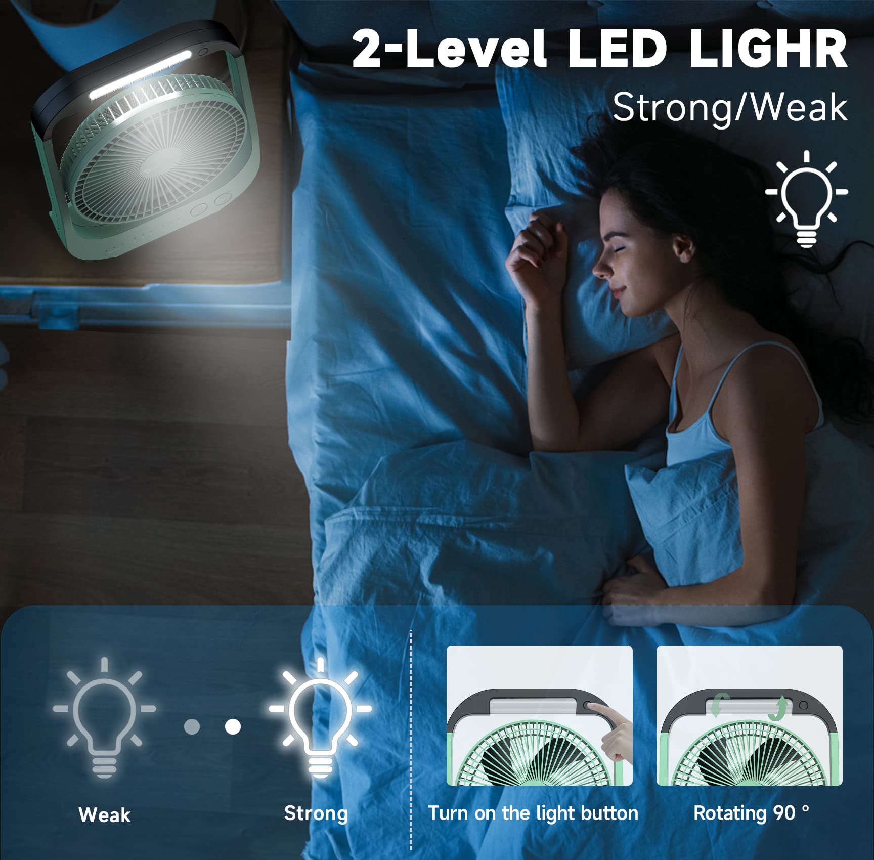 • 💡 This is an LED light desk fan. There are two kinds of brightness can be adjusted. Can be used as a night light while sleeping. Lighting can also be provided when camping outdoors. is a very useful function.