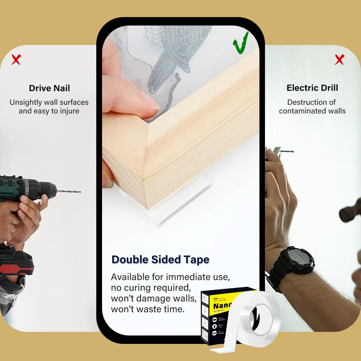 • ๐’๐š๐Ÿ๐ž ๐Ÿ๐จ๐ซ ๐€๐ฅ๐ฅ ๐’๐ฎ๐ซ๐Ÿ๐š๐œ๐ž๐ฌ, ๐ˆ๐๐ž๐š๐ฅ ๐Ÿ๐จ๐ซ ๐‡๐จ๐ฆ๐ž ๐๐ซ๐จ๐ฃ๐ž๐œ๐ญ๐ฌ:Gentle and safe on all materials, including paint, wood, glass, and metal. This tape is ideal for use in bathrooms, high-traffic areas, or delicate surfaces, ensuring a secure and reliable hold wherever you need it