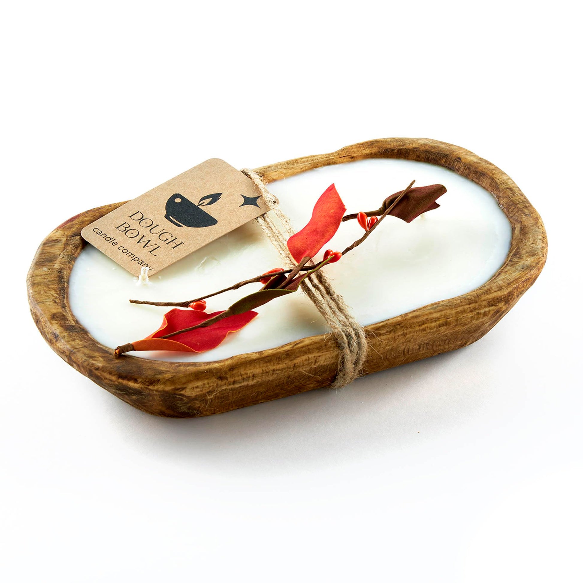 • {Doubles As Farmhouse Chic Décor} When you've only got 1/4 of the pumpkin spice candle left in the dough bowl, clean out the wax. The bowl doubles as a centerpiece, tray, key holder, fruit bowl, planter, or decor item. After all, these 10' x 6' wood dough bowls for candles were initially used for bread making. They can be really creative farmhouse home decor, so let your imagination run wild!