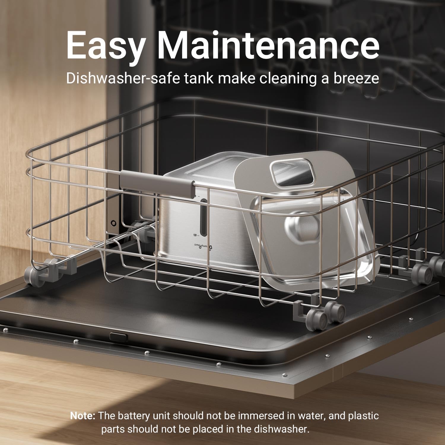 • Stainless Steel Design: The wireless cat water fountain is made of food-grade stainless steel, which is not easy to attach limescale or other organisms, maintaining healthy water quality. And it is dishwasher safe, 360° full cleaning, more peace of mind