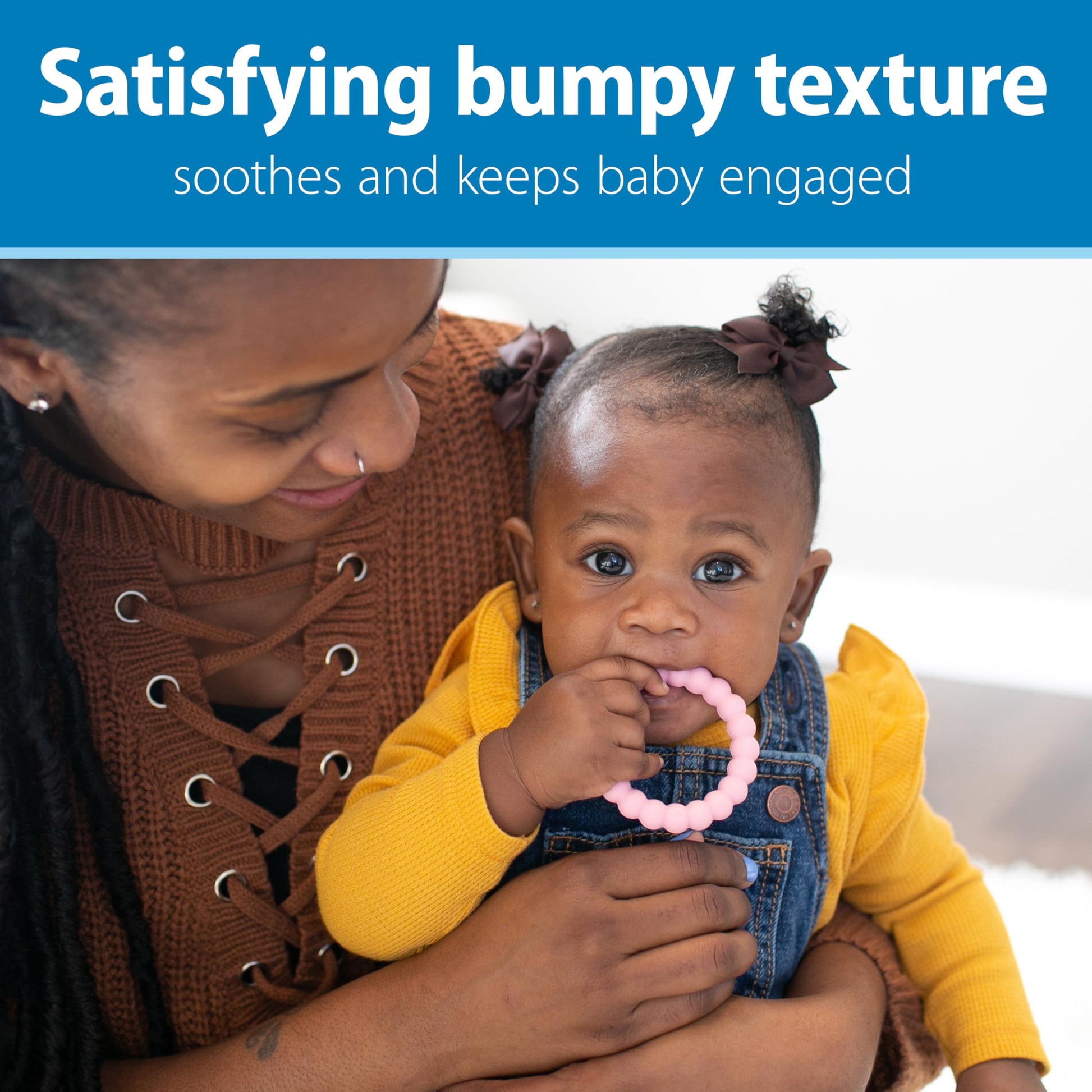 • SATISFYING TEXTURE. The bumpy beaded texture soothes sore spots on baby's teething gums and emerging teeth and keeps exploring fingers and mouths engaged.