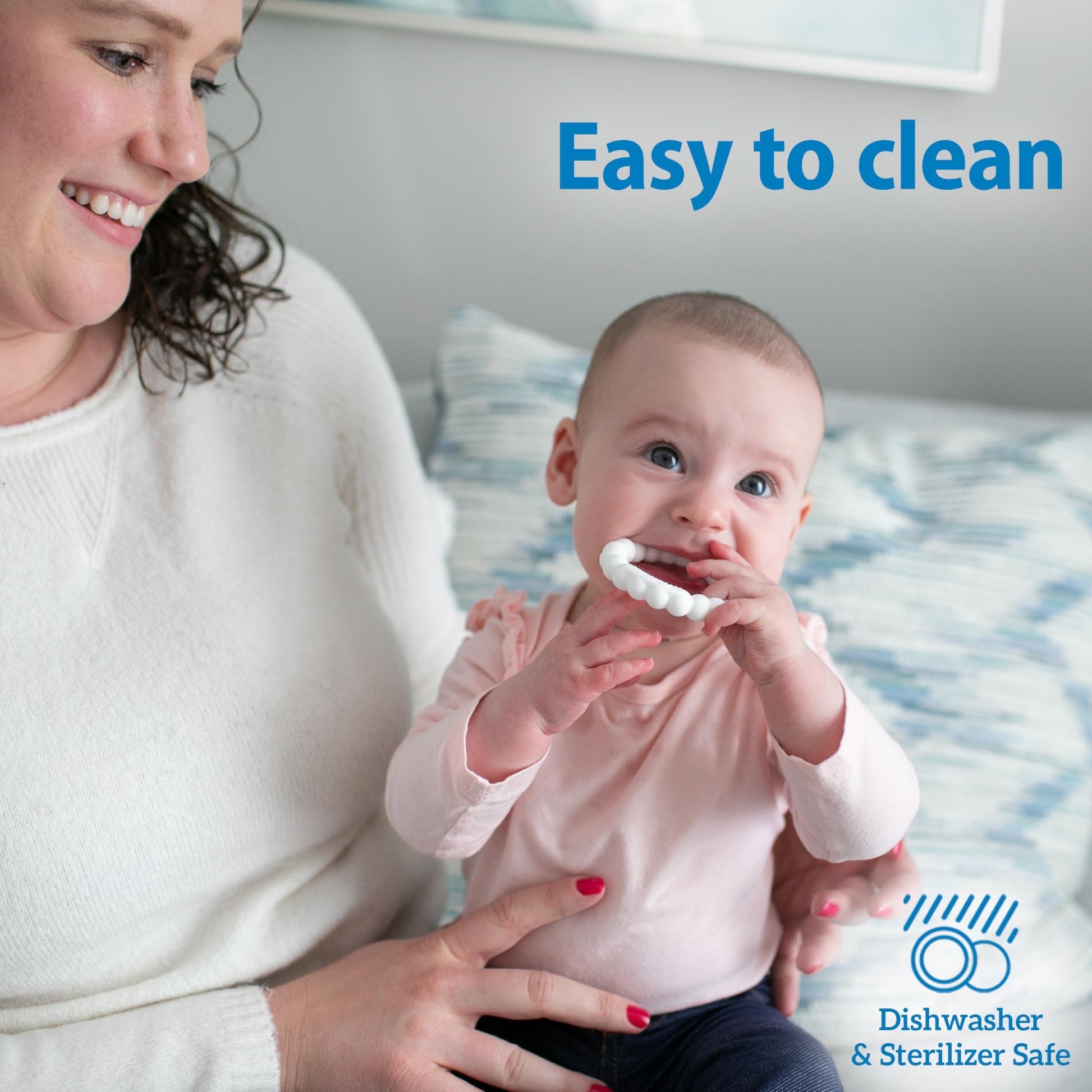 • EASY TO CLEAN. The teething rings are dishwasher (top rack) and sterilizer safe. BPA free.