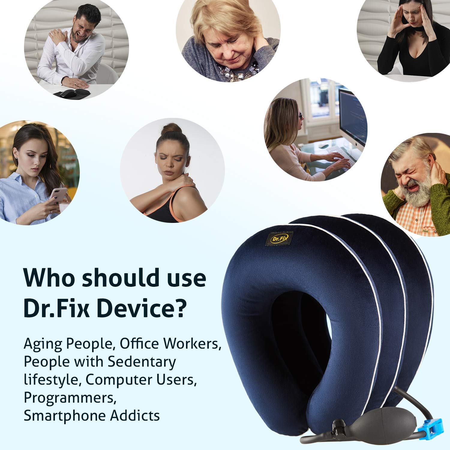 Details: Your neck pain keeps you to truly enjoying life? Do you always feel tired, grind your teeth and have neck pain or shoulder pain? We know the feeling! At last! You find the solution for your Neck Pain relieve . ★ Dr.Fix Cervical Neck Traction Device offer a neck support to prevent and relieve neck and shoulder pain/injuries. It partially unload the cervical spine and help support the weight of the head. By stretching the neck and lifting it upwards, blood circulation gets increased to the structures of the cervical spine, helping to oxygenate muscles, nerves, tendons, thus decreasing pain and promoting relaxation. ★ Dr.Fix is suitable for home use. It offers support for: Cervical spondylosis herniated, Compressed or bulging cervical discs, Neck strains, Pinched nerves, Cervical muscle spasms, Spine Alignment, Chronic Neck Pain, Tension, Arthritis. ★ How to use: * Scroll down and Watch Video * For very good results we recommend using the collar in a progressive manner. In the first week we recommend using 2 times a day for 10 to 15 minutes. In the second week 2-3 times/day for 15-20 minutes. The collar pressure will be progressive. ★ Please read the Instructions Brochure carefully and follow the doctor's advice before using this product. ★Do NOT Over Inflate the Device ★ We offer 100% satisfaction guaranteed! Choose Dr.Fix! Order the Dr.Fix Neck Traction Device today and Relieve Your Pain!