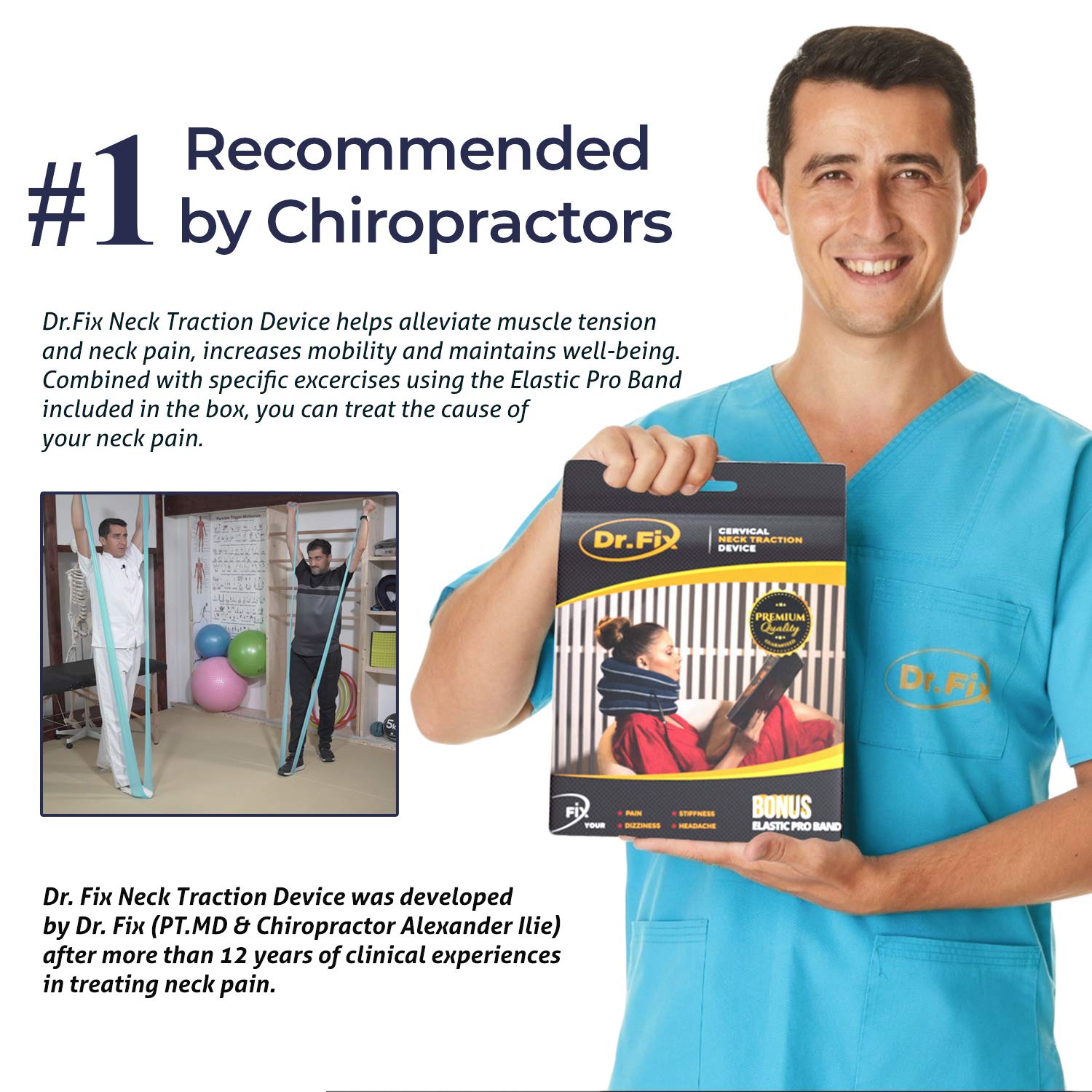 ✅ OUR PACK INCLUDES: Cervical Neck Traction Device, Elastic Band for Exercises, e-Book, Access to : 10 Video Daily Exercises from Dr.Fix.