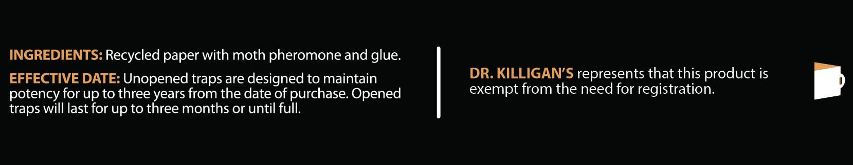 • Design Options — Dr. Killigan’s moth traps are also dressed to impress so you can display them with confidence. Choose between two unique design options when purchasing a 6-pack of Premium Pantry Moth Traps. Both options include the same proprietary, double-potent pheromones and the industrial-grade glue.