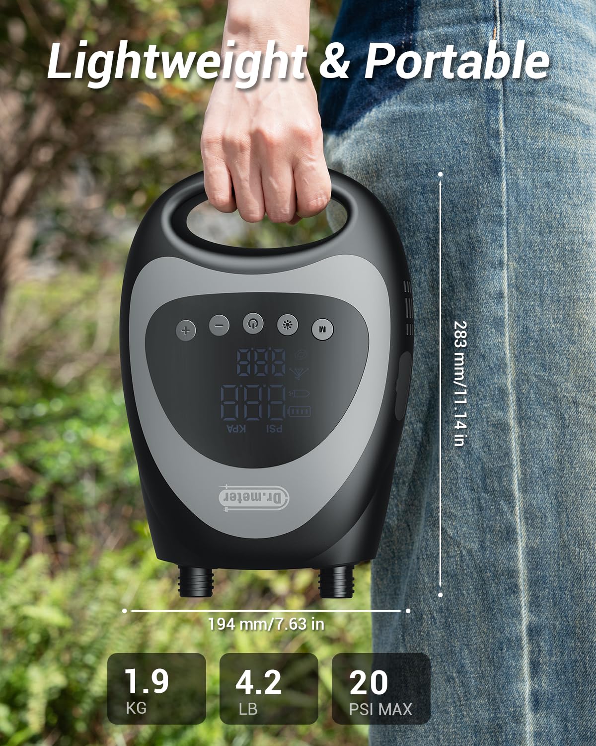 Dr.meter Paddle Board Pump, Rechargeable 20PSI High Pressure Dual Powered Portable Electric SUP Air Pump with LED Light Auto-Off Inflate Deflate, for Stand Up Paddle Boards Inflatable Kayaks Boats