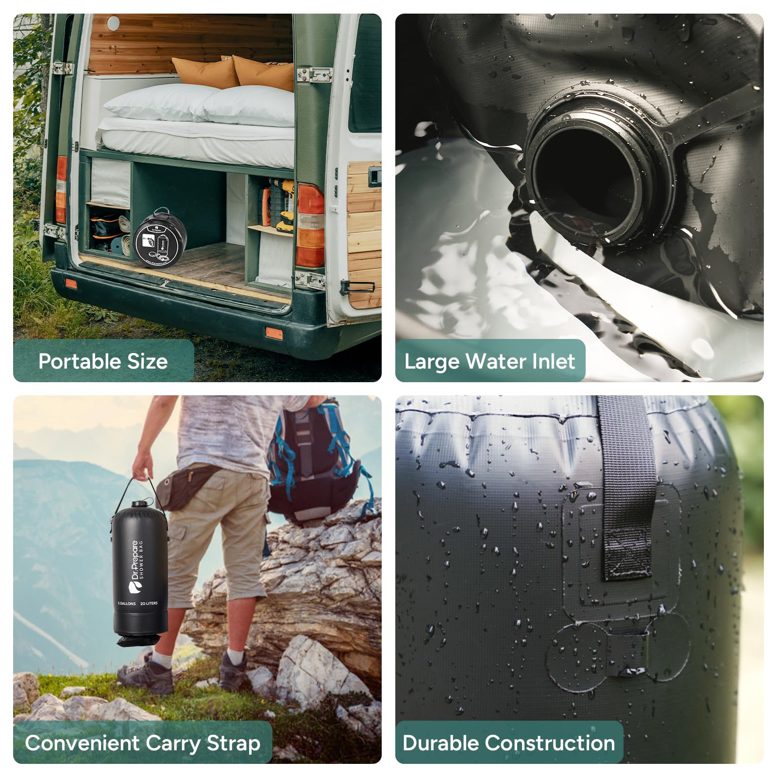 DR.PREPARE Portable Shower for Camping, 4/5 Gallons Camping Shower Bag, Portable Outdoor Shower with Pump for Hiking, Climbing, Pet Cleaning, Car Washing, Beach & Emergency