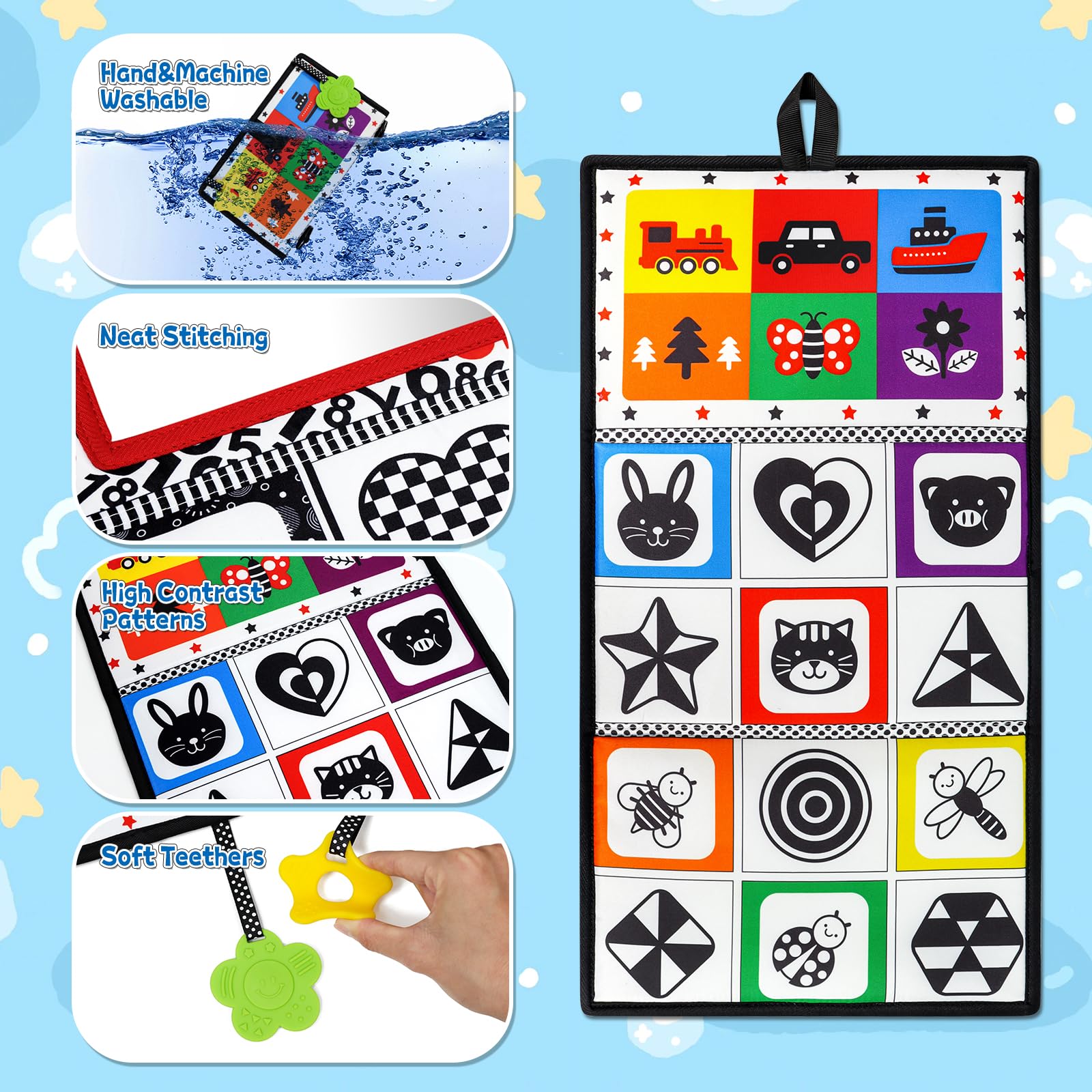 • Baby Mirror Toy: This is a black and white baby mirror toy for crawling time, perfect for baby to get more fun through the interesting patterns and floor mirror during tummy time. Tummy time toy helps strengthen baby’s muscles through crawling and playing