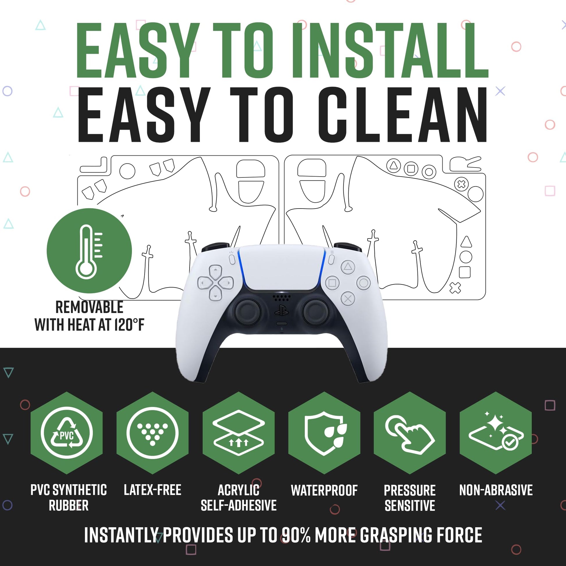 • EASY TO CLEAN & WATERPROOF PS5 GRIP STICKERS WITH MINIMAL RESIDUE. Made of PVC rubber grip tape with self-adhesive acrylic for easy to peel and stick application. Simply peel it off and paste it on any surface of your controller with firm pressure.
