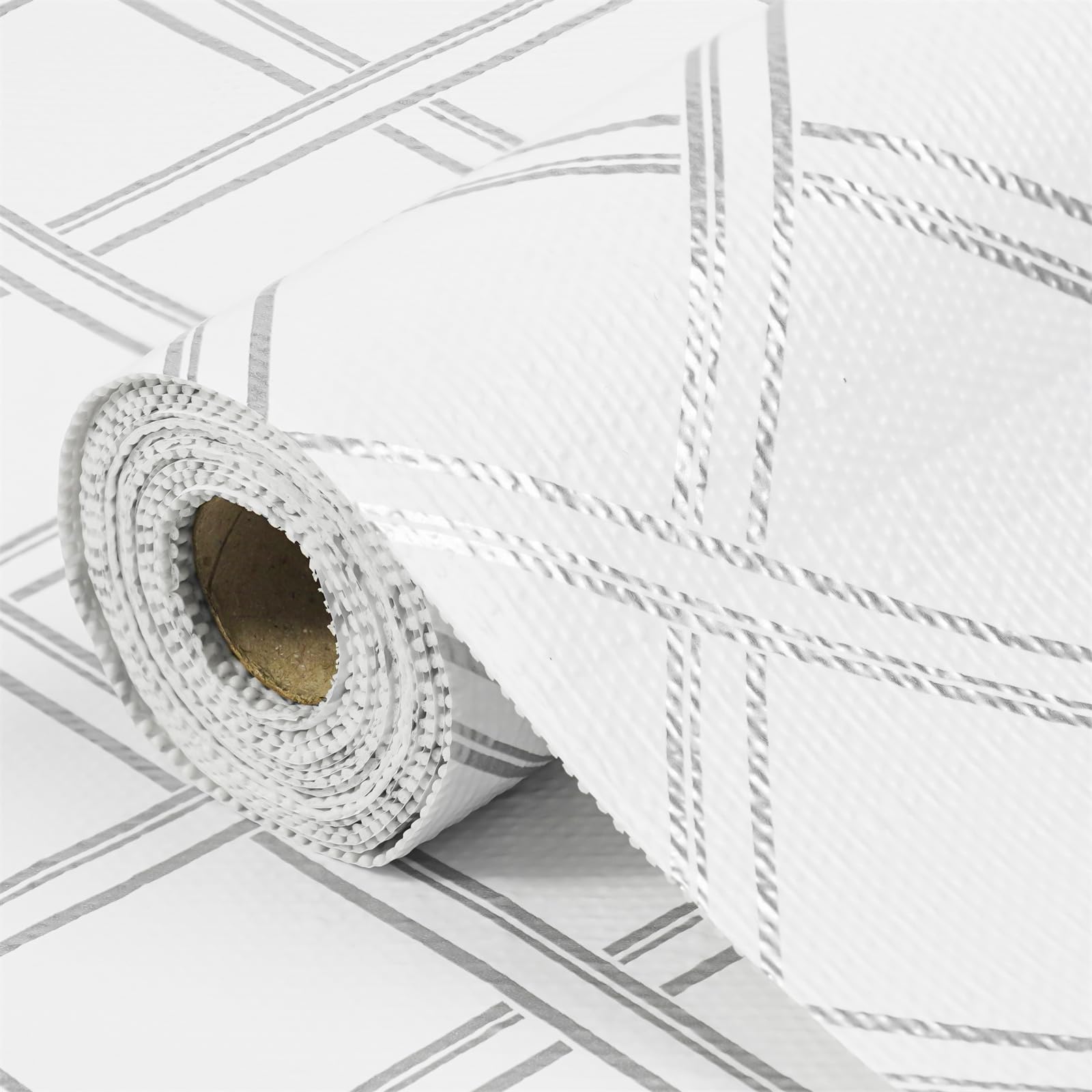 Drawer and Shelf Liner for Kitchen Cabinets Non-Adhesive Cabinet Liners for Shelves Strong Grip Non Slip Waterproof Cupboard Liner for Dresser Refrigerator, Bathroom,Silver Geometric,17.5IN X 10FT