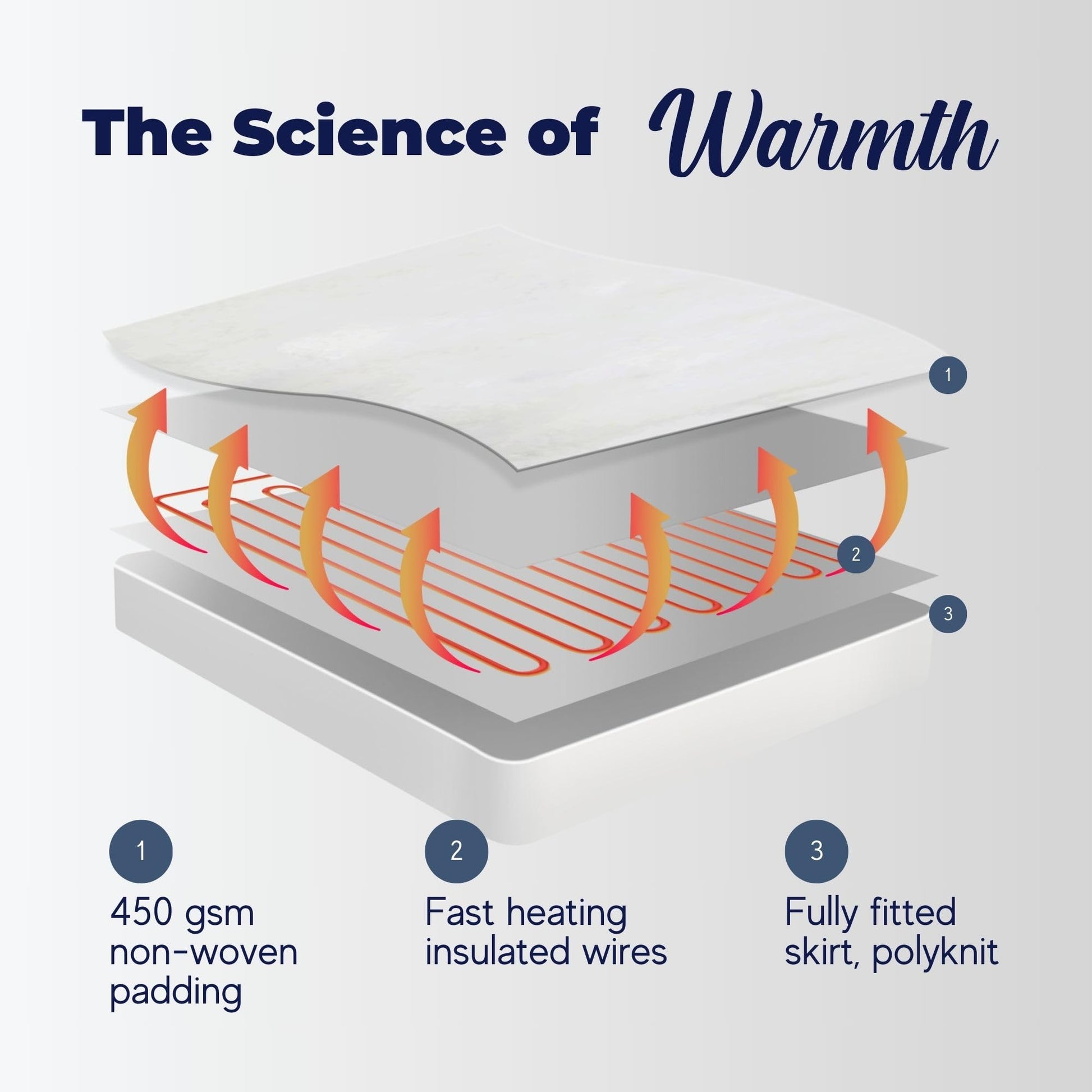 • Individual Heat Zones & Controllers: Available for sizes DB and above. Experience the luxury of customised warmth with Dreamaker's adjustable 3 heat setting simple controller with low-glare led display.