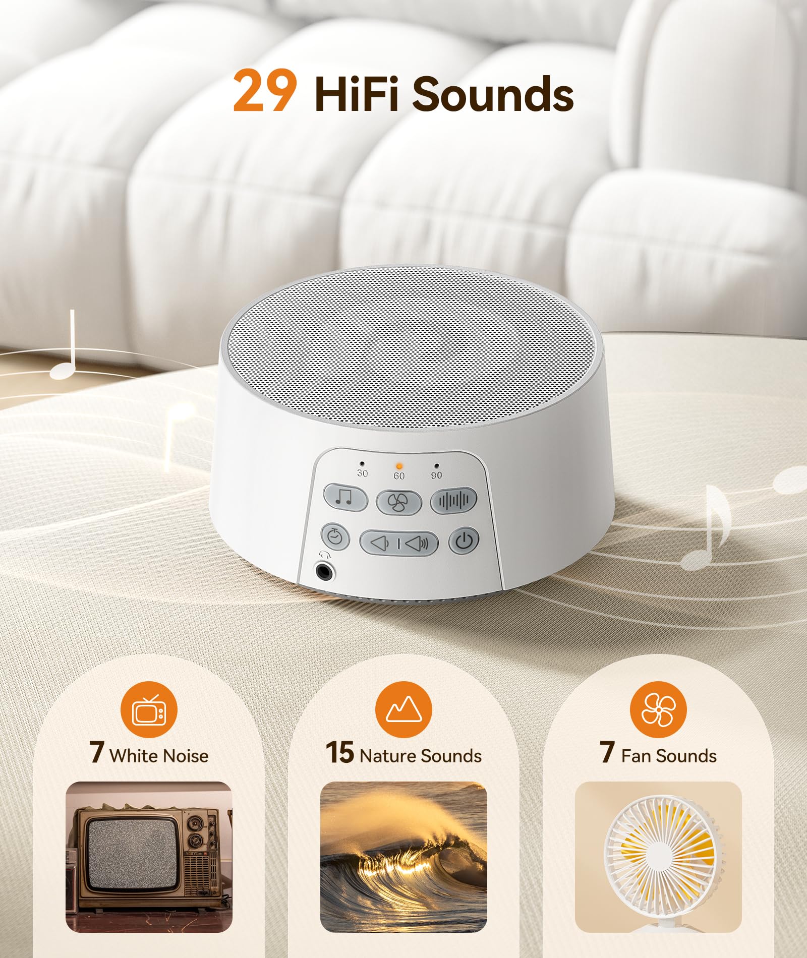 Dreamegg White Noise Sound Machine for Adults Sleeping, D3 Pro Sound Machine for Baby Adults, 29 HiFi Sound, Battery/Adapter, Portable Sound Machine for Sleeping, Sound Therapy for Home Office Travel