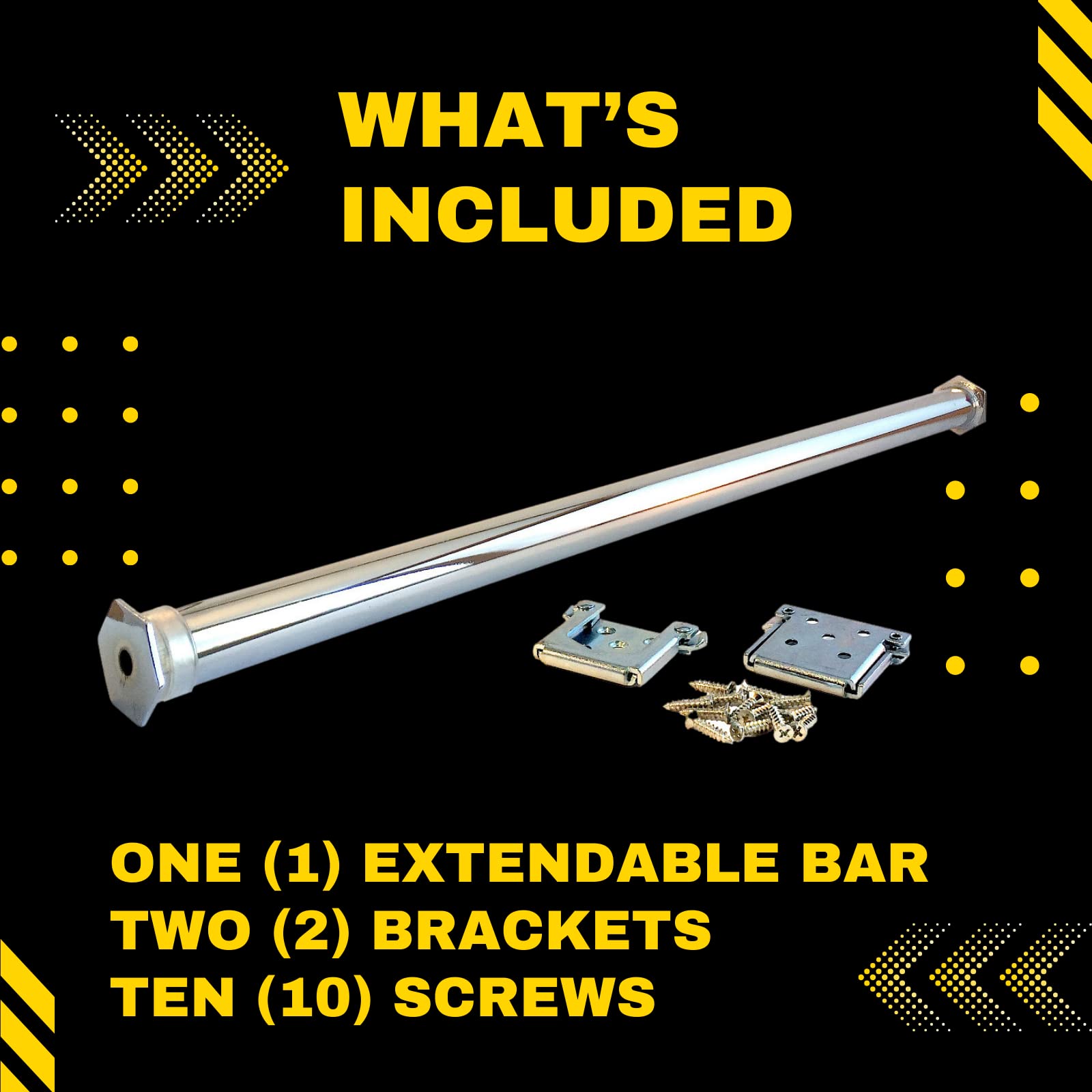 Details: The DreamGYM Pull-Up Bar is easily installed in 26' to 36' door frames and is ideal for home gyms. The adjustable chrome plated bar is secured by metal brackets that do not interfere with closing or opening the door. The Pull Up Bar is made of high quality, non-rusting steel. This simple yet effective home workout tool can be used by all ages for back and shoulder strengthening, plus upper body toning exercises. It will effectively target your back, shoulders, chest, arm and abdominal muscles.