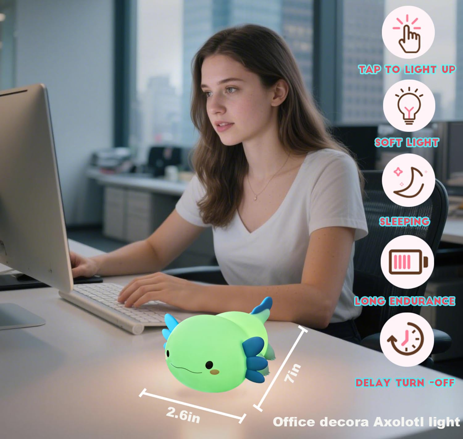 • Safe and BPA Free:Cute Axolotl lamp,Using food grade safe materials,BPA free, safe for kids,soft silicone material Soft lighting,soft touch,that can be kneaded freely,axolotl night light is a cute bedtime toy for kids to relieve stress,It is also a cute kids room decor