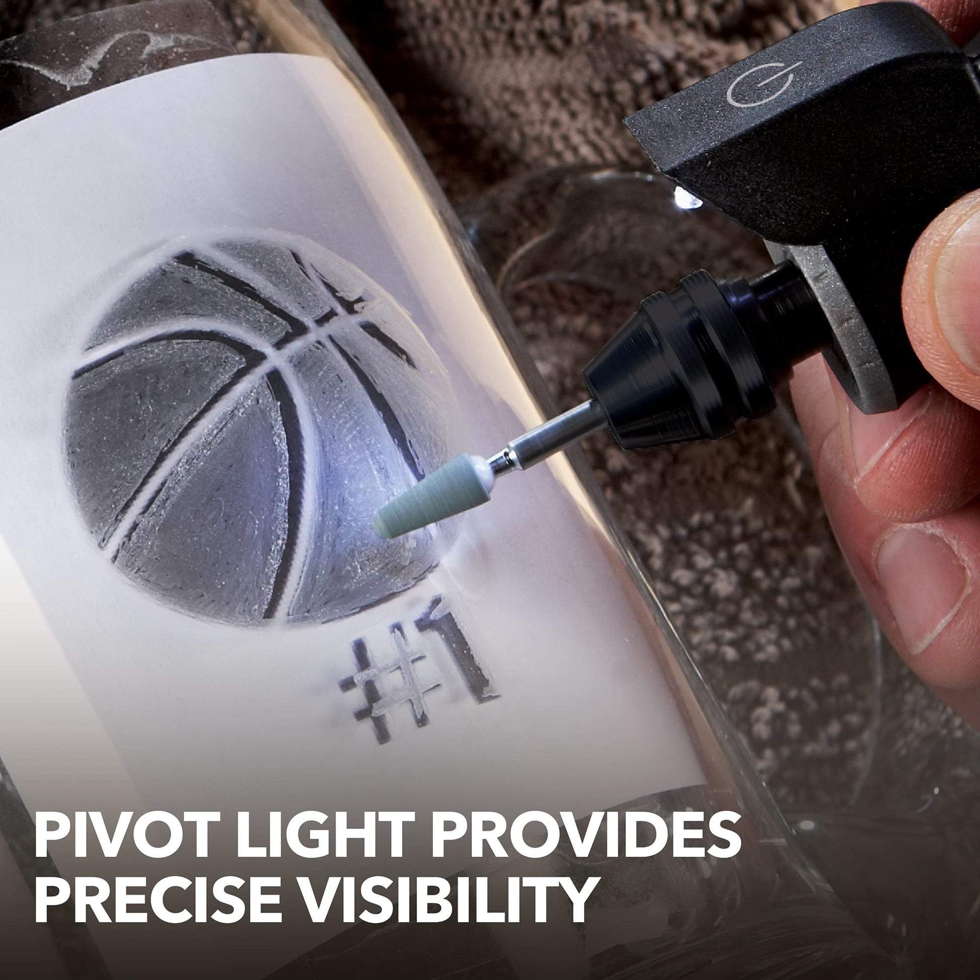 Details: Endless possibilities, one tool. From sanding to grinding, and routing to cutting; the Dremel 4300 produces power from job to job. The 4300 is the first Dremel rotary tool to allow tool-less and collet-less accessory changes with the inclusion of the keyless chuck. The chuck accepts all Dremel accessory shank sizes for fast and convenient accessory changes without ever using a wrench. Featuring the all new Pivot Light, your projects are well-lit with an optimum line of sight since the light pivots to direct illumination where you want it. Experiencing the full range of Dremel rotary tool applications is easier than ever because the 4300 offers our most powerful motor with built-in variable speed and electronic feedback circuitry. And the slim, ergonomic body design provides a comfortable 360-degree grip zone no matter how you hold it for extended ease of use. The completely redesigned airflow system lets the Dremel 4300 run cool, quiet, and smooth so completing projects are more enjoyable than ever. The Dremel 4300 is perfect for sharpening garden tools including lawn mower blades. This variable speed rotary tool is a wood engraver, metal engraver, glass engraver and etcher, detail sander, drill bit sander, and a micro drill