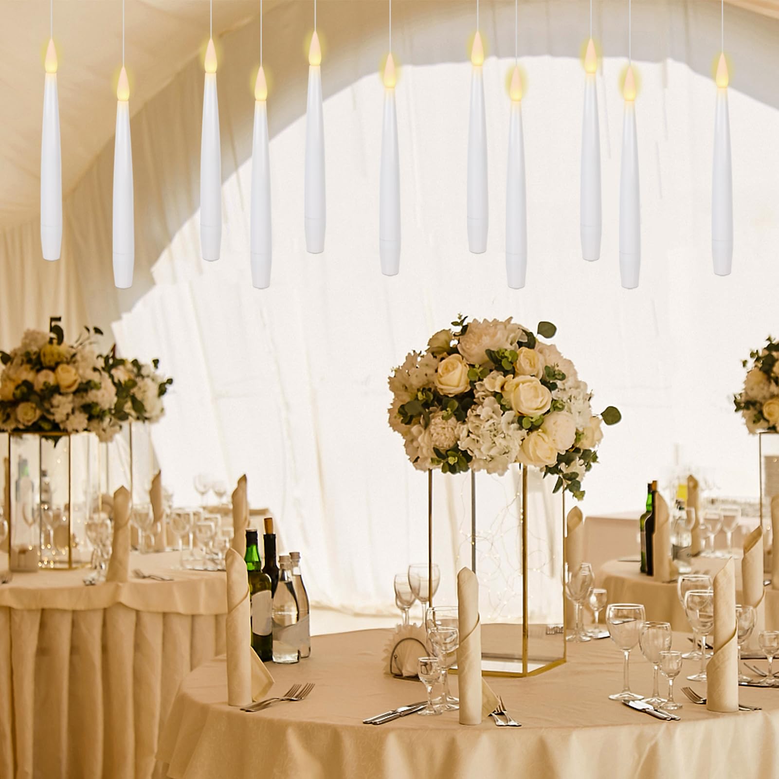 DRomance 22pcs Floating Flameless Candles with Wand Remote and Timer, Battery Operated Magic Hanging LED Flickering Window Taper Candles Warm Light Halloween Lights Decoration(0.45" x 6.1")