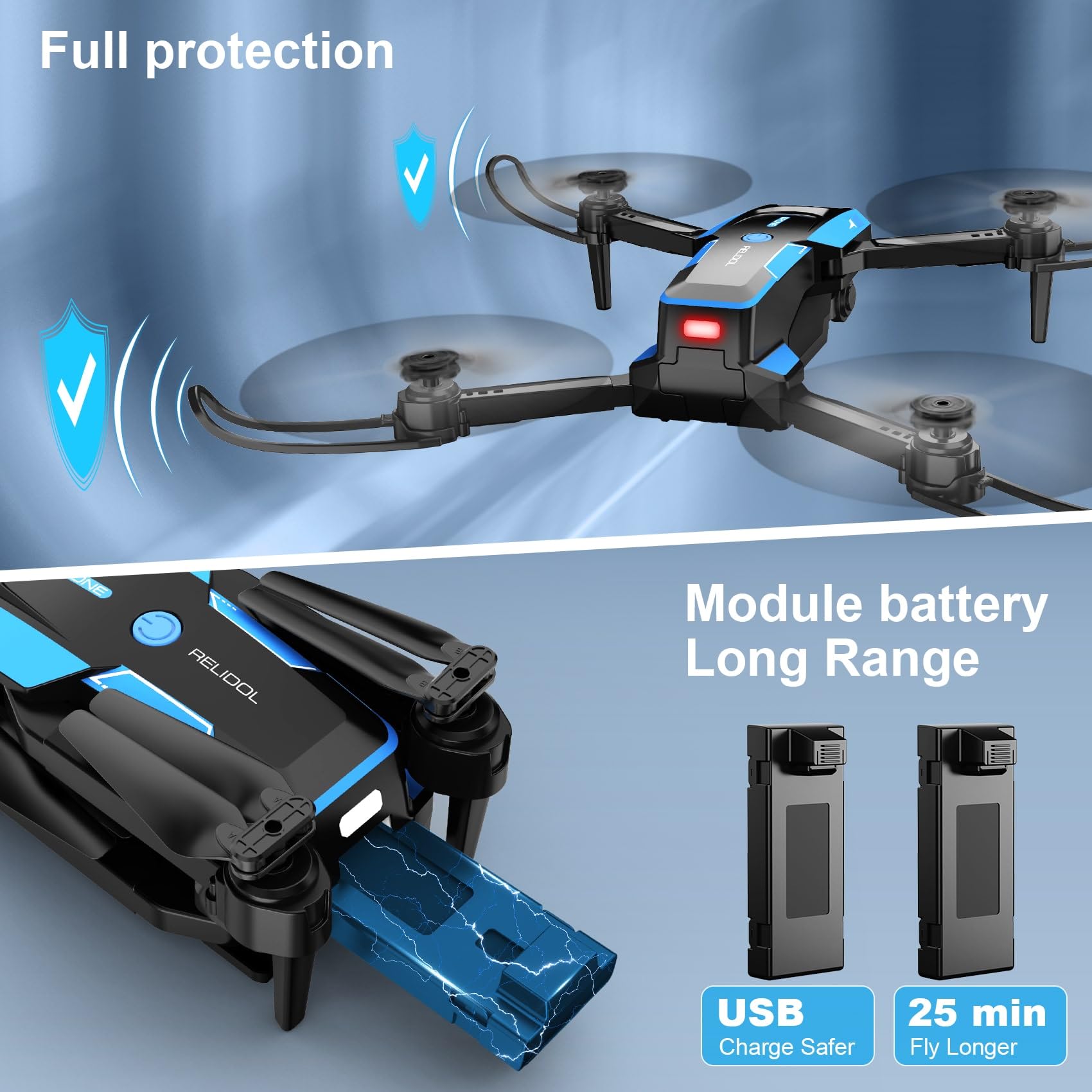 • 🎁【Cool Gift for Kids】 This camera drone equipped with smart functions such as Altitude Hold, Optical Flow and Air Pressure provide very precise and stable hovering; Headless mode, one-click start, speed adjustment and other functions allow players to easily control. Great idea to take it to the party, school, fishing, hiking, long journey, etc. It is a great birthday gift, Christmas gift for drone lovers, and curious and exploratory adults and kids!
