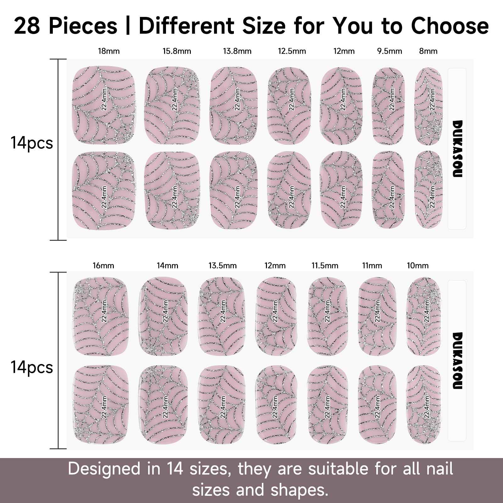 DUKASOU Semi Cured Gel Nail Strips | 28 pcs Gel Nails Strips Halloween Work with Any UV Lamps, Long Lasting UV Nail Stickers for Women DIY Nails Wraps (Spider Web)