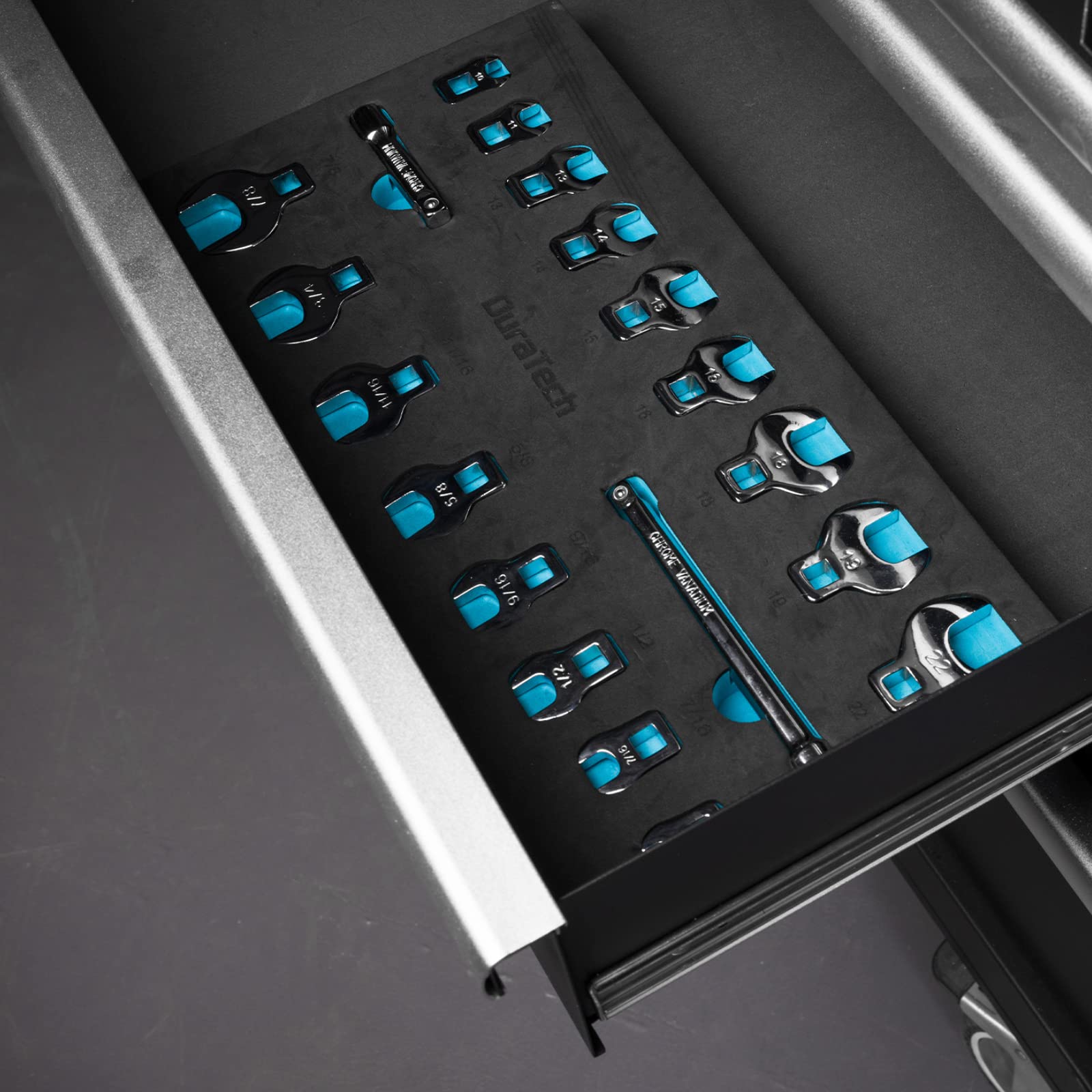DURATECH 3/8" Drive Crowfoot Wrench Set with 2 Extension Bars, SAE & Metric, 19-Piece, 10-22mm & 3/8"-7/8", CR-V Steel, with EVA Foam Tool Organizer