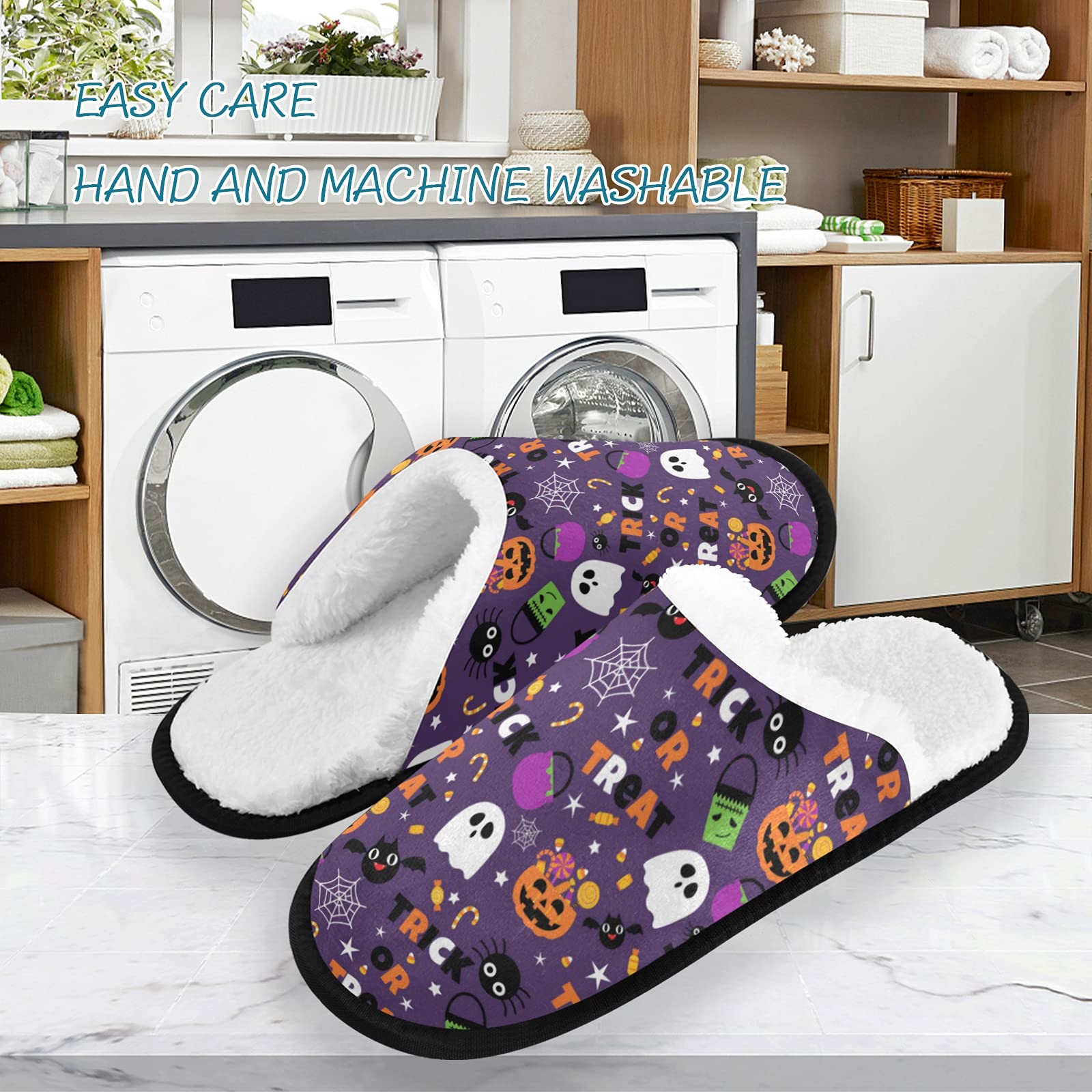 Dussdil Halloween Ghost Pumpkin Womens Mens Slippers Candy Bats Spider Home Spa Slippers Memory Foam Closed Toe Slipper Non Slip for House Hotel Bedroom Travel Shoes M