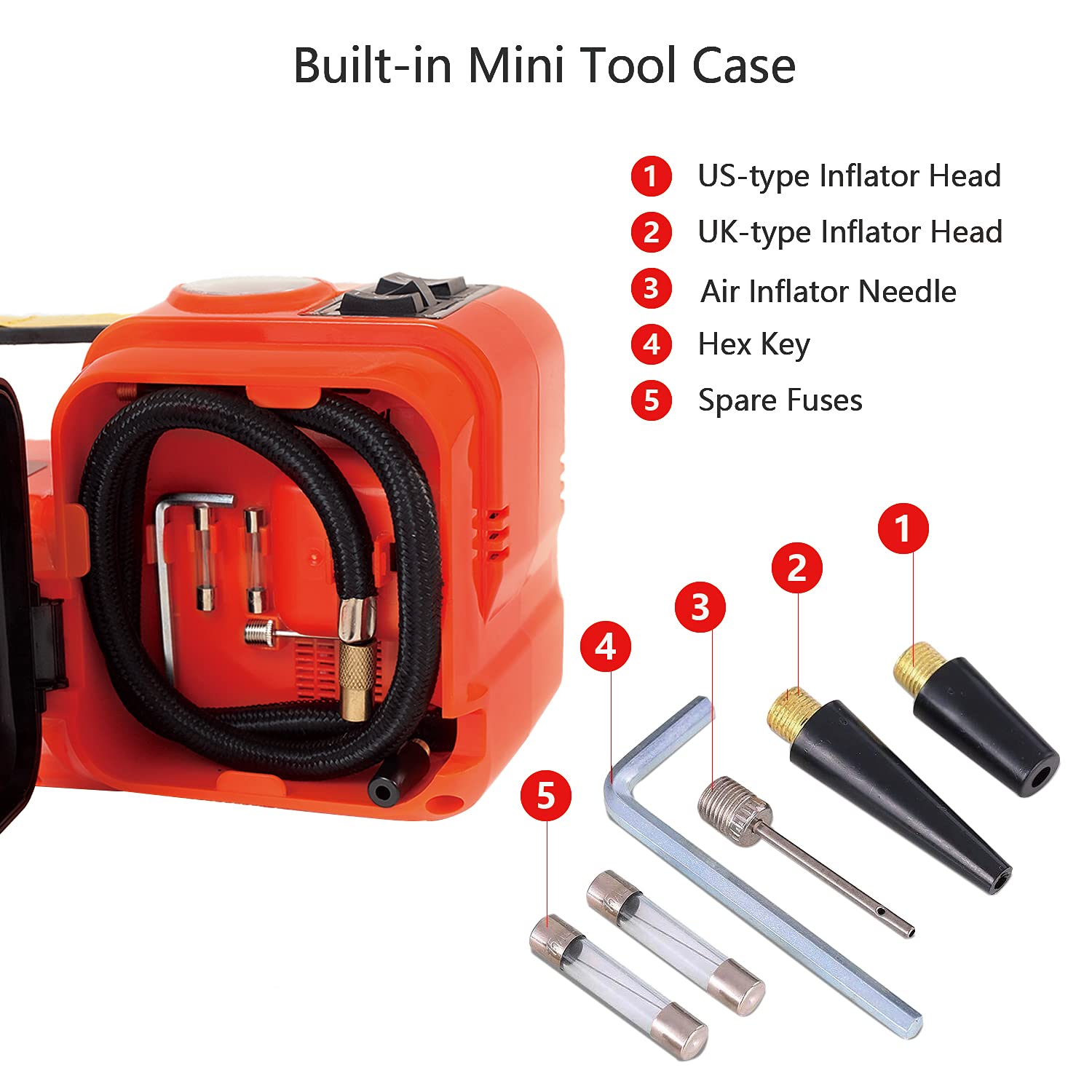 E-HEELP Electric Car Jack 5Ton 12V Kit Hydraulic (Lifting Range: 6.1~17.7 inch) with Inflator Electric Jack for Car SUV Sedan MPV Change Tires Garage Repair Emergency Kit