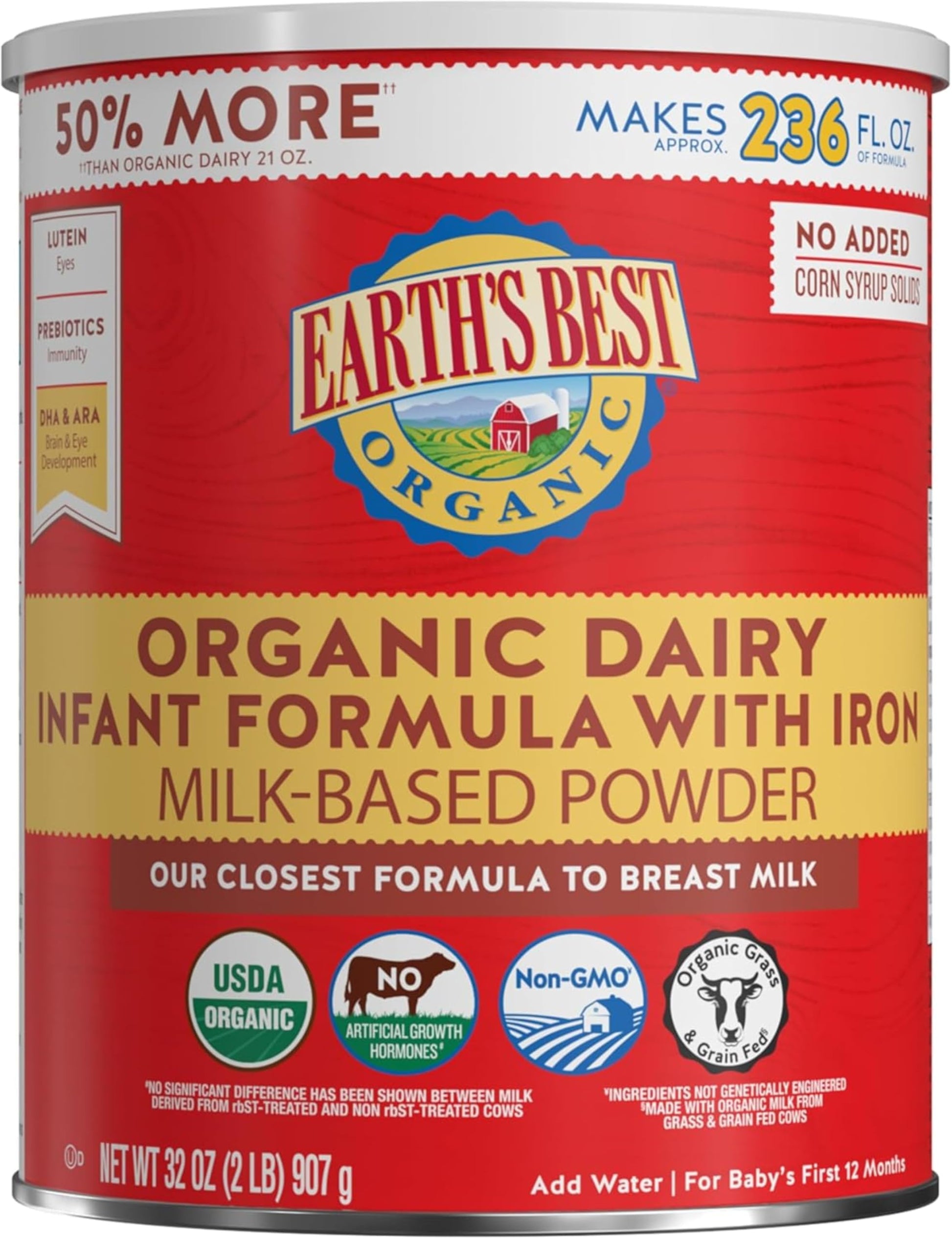 • 32 OZ FORMULA CONTAINER: Includes one 32 oz container of Earth's Best Organic Dairy Infant Formula