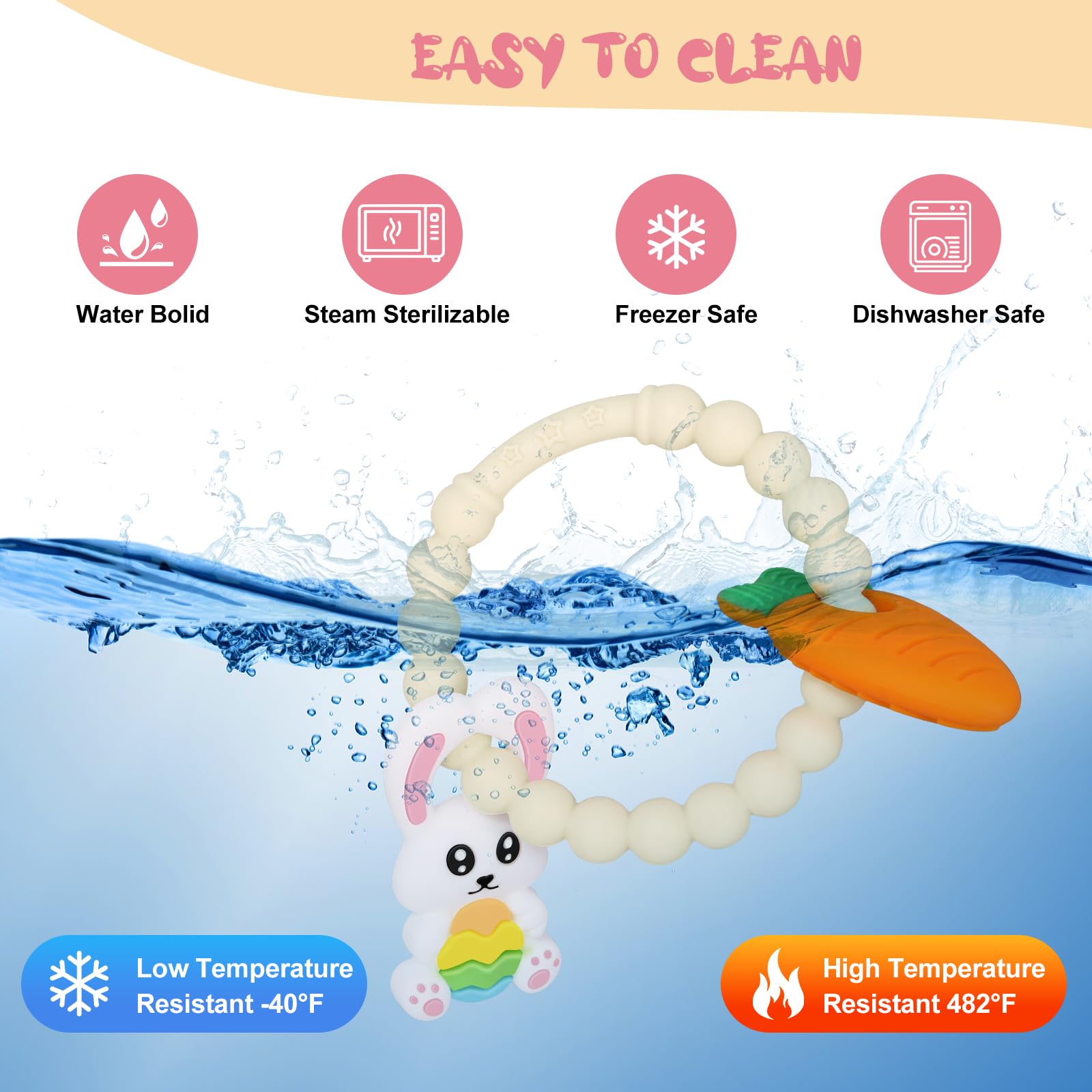 • 【Easy to Clean and Maintain】Simply rinse the teething ring in warm, soapy water or place in the dishwasher for quick and easy cleaning. You can also store them in the freezer to ensure they are always hygienic and ready to use