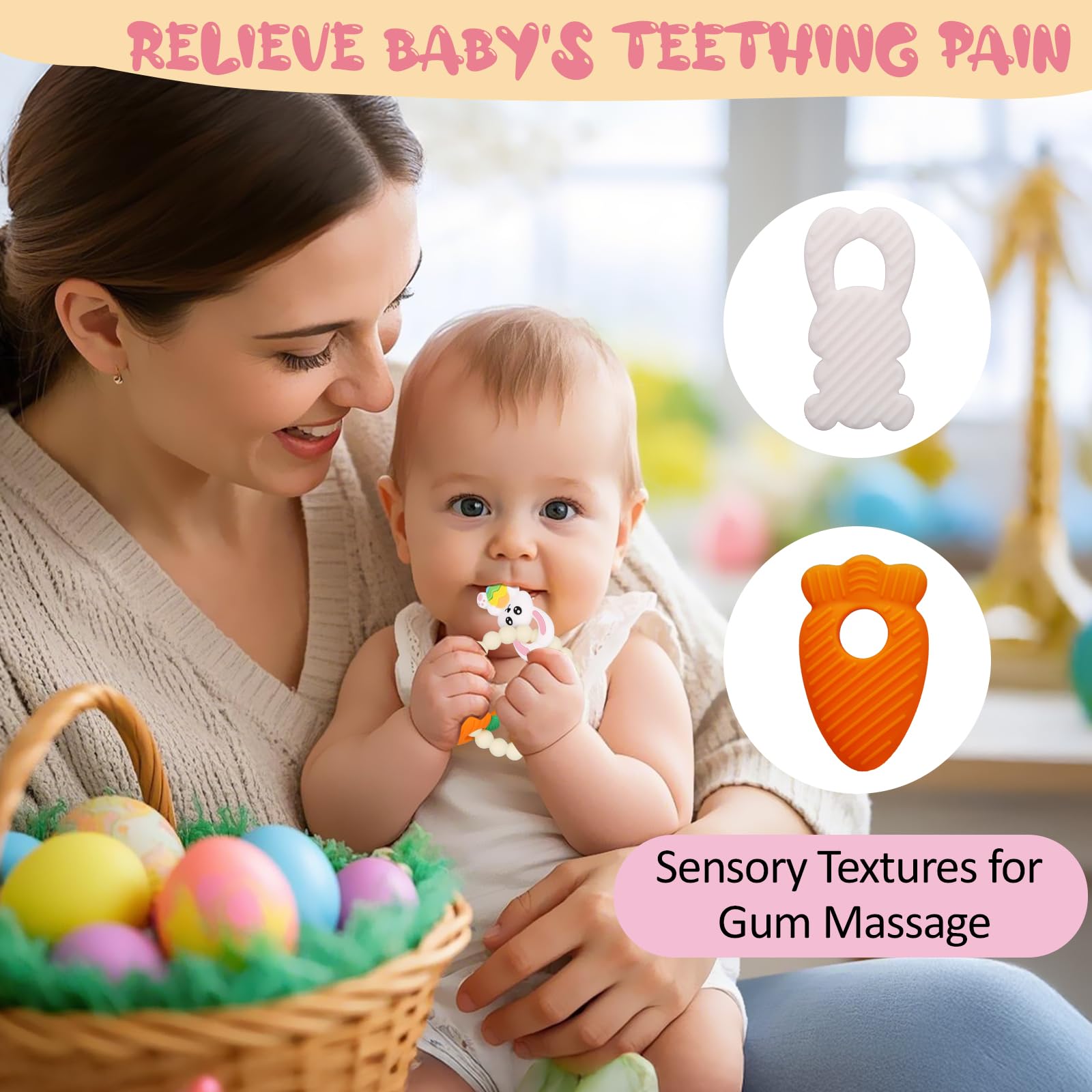 Easter Baby Teething Ring Toys – Bunny Easter Egg & Carrot Teethers for Newborns, Infants & Toddlers – Sensory Chew Bracelet for Teething Relief – Perfect Baby’s First Easter Basket Stuffers