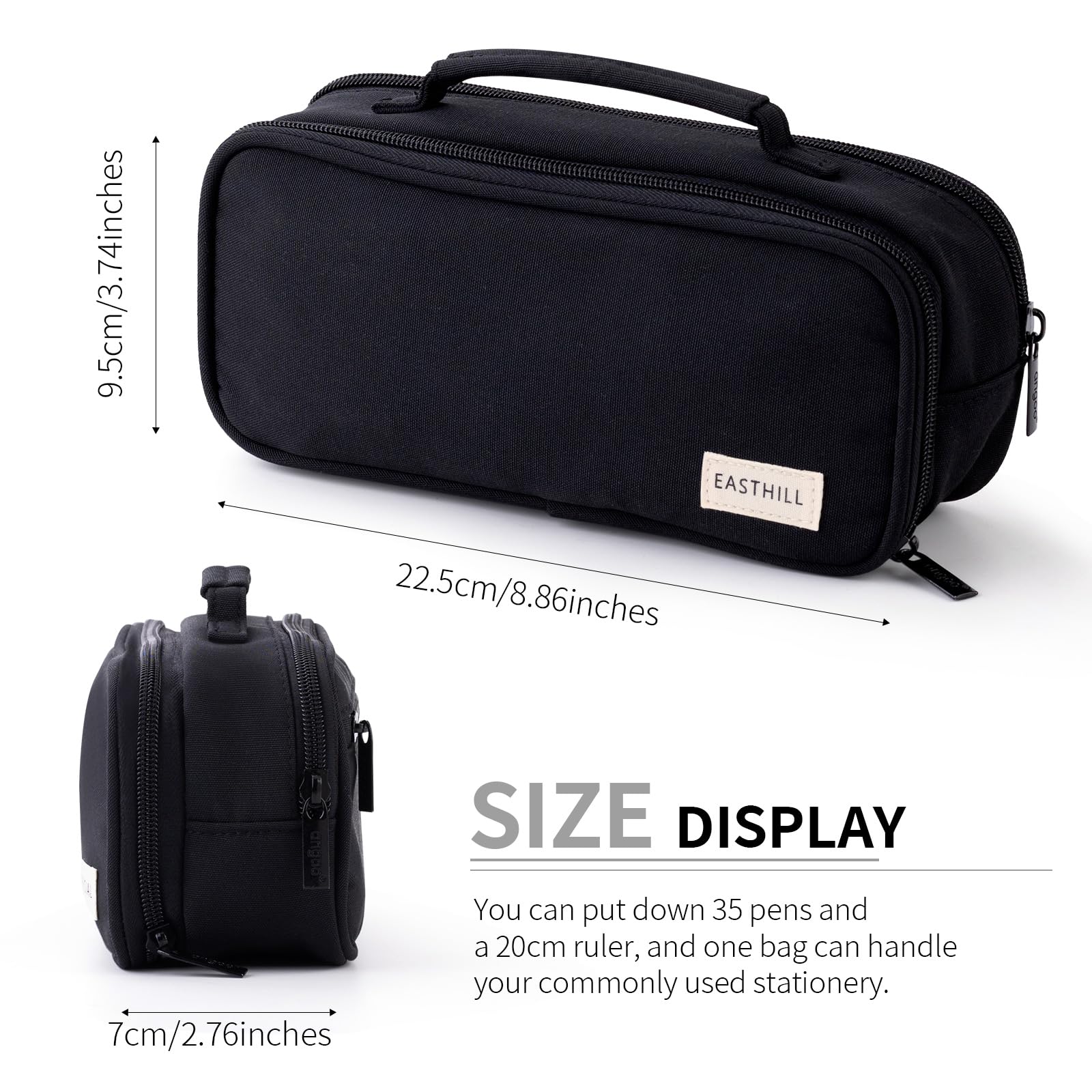 EASTHILL Large Capacity Pencil Case Pen Pouch Organizer Canvas Pencil Bag with Handle School Supplies for Teen Girls-Black
